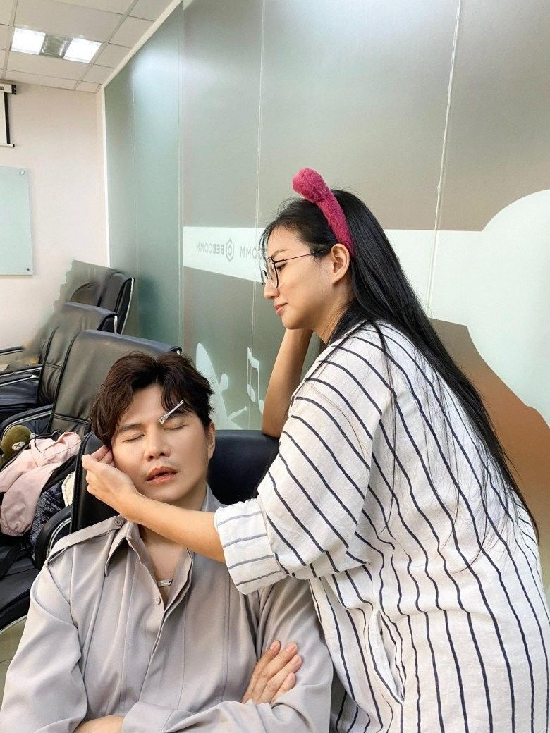 Đại Nghĩa cho biết: "Thấy bả nhìn xuống kịch bản, tưởng bả đang chăm chú lắm, lâu lâu gục gật đầu tưởng như ra chiều tâm đắc, ai dè đâu bả... ngủ. Giữa phim trường đông người, ồn ào náo nhiệt vậy mà bả vẫn ngủ bất chấp, ngủ một cách ngang ngược vậy luôn đó."