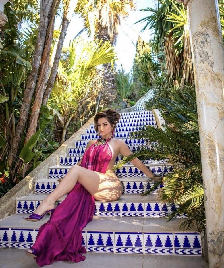 Cô chia sẻ, đây là bộ cánh người đẹp yêu thích nhất vì nó được thiết kế theo trend hiện đại với chiếc áo ngực hình viên đạn. Tấm hình chụp sở hữu lượng tương tác nhiều nhất trong chuyến du lịch của cô nàng.