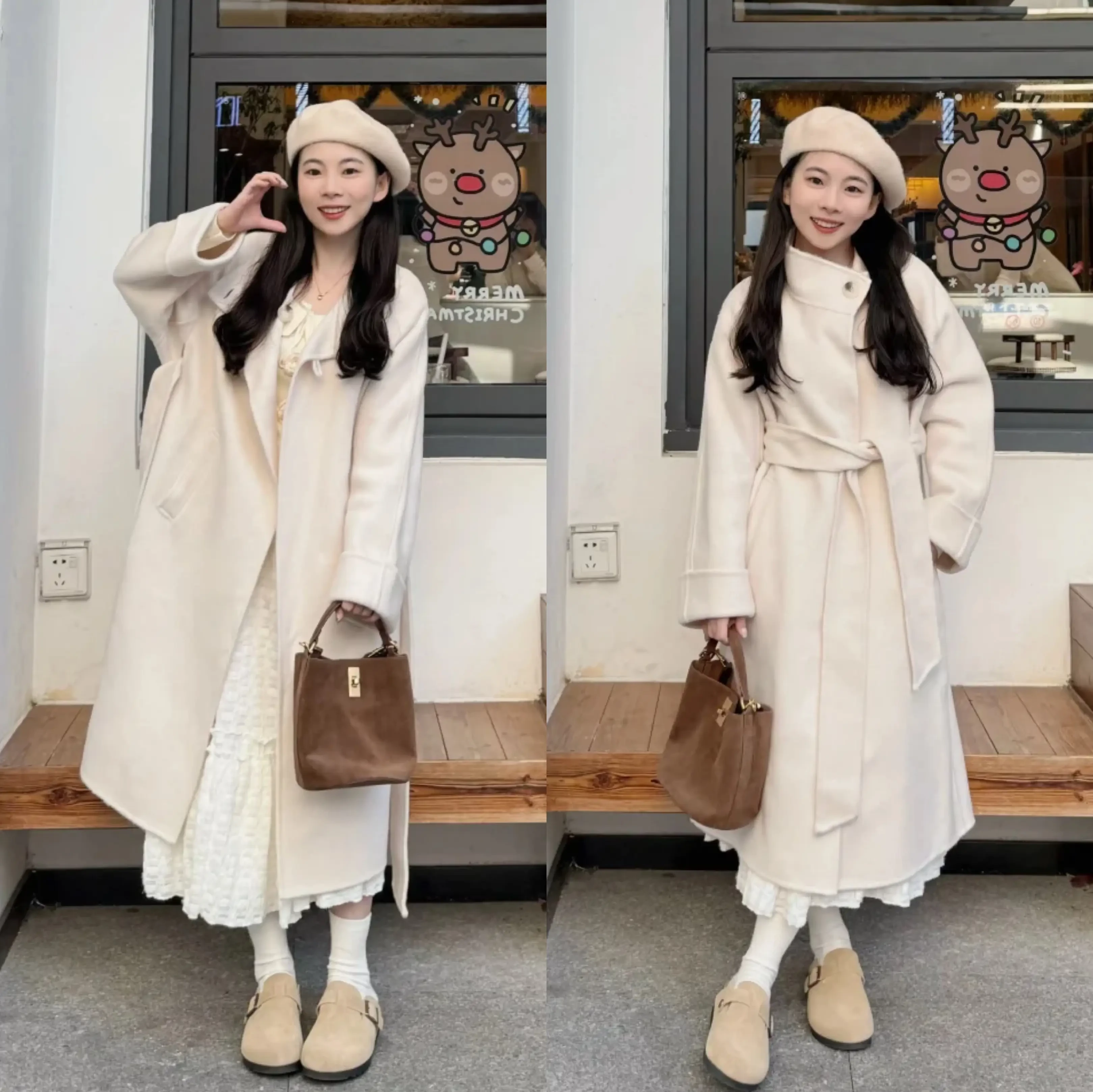 Áo khoác dài màu be là lựa chọn phổ biến để xây dựng phong cách dịu dàng, tinh tế. Phụ nữ nhỏ nhắn có thể phối cùng váy liền hoặc chân váy cùng tông màu, kết hợp mũ beret đồng điệu để tạo tổng thể hài hòa. Bốt cổ ngắn giúp phần thân dưới trông gọn gàng hơn, đồng thời tôn đường nét đôi chân. Trong điều kiện thời tiết lạnh, váy len hoặc váy dệt kim là những chất liệu phù hợp, vừa giữ ấm vừa đảm bảo tính thẩm mỹ.