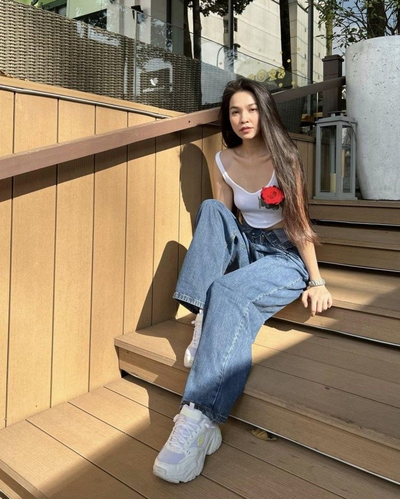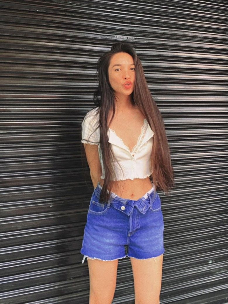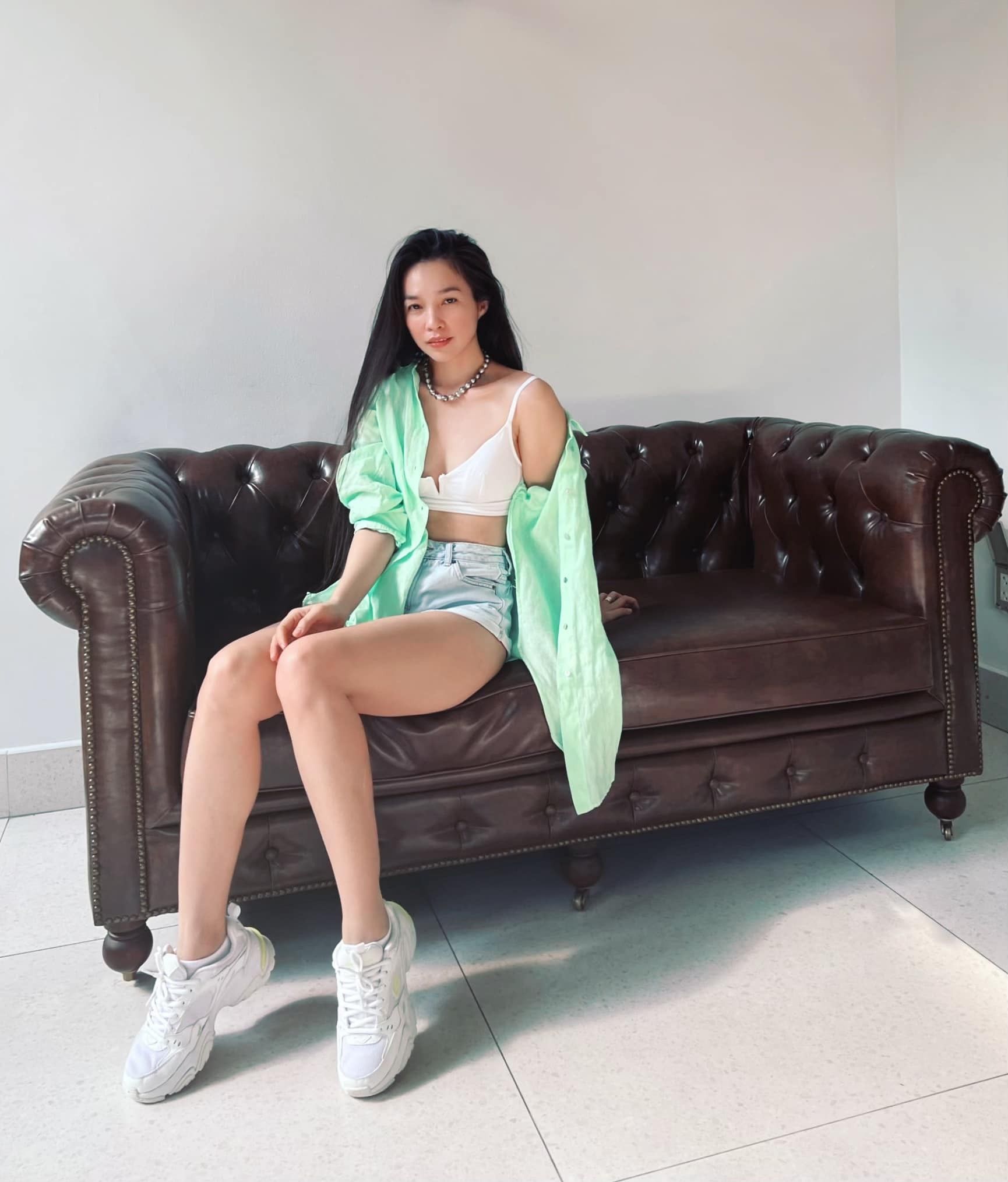 Hiền Thục xuống phố "cưa sừng làm nghé" tới bến với các item tuổi teen như quần shorts lận cạp, áo croptop. Cô thậm chí còn cởi hết hàng cúc mát mẻ và sảng khoái.