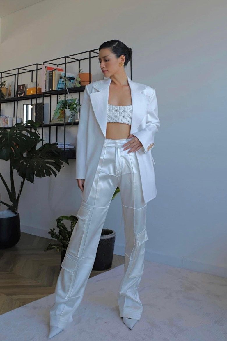 Muốn mặc croptop 5cm theo cách thanh lịch và trang nhã hơn, sóng đôi cùng set suit trắng ton - sur - ton chính là sự lựa chọn lý tưởng nhất.