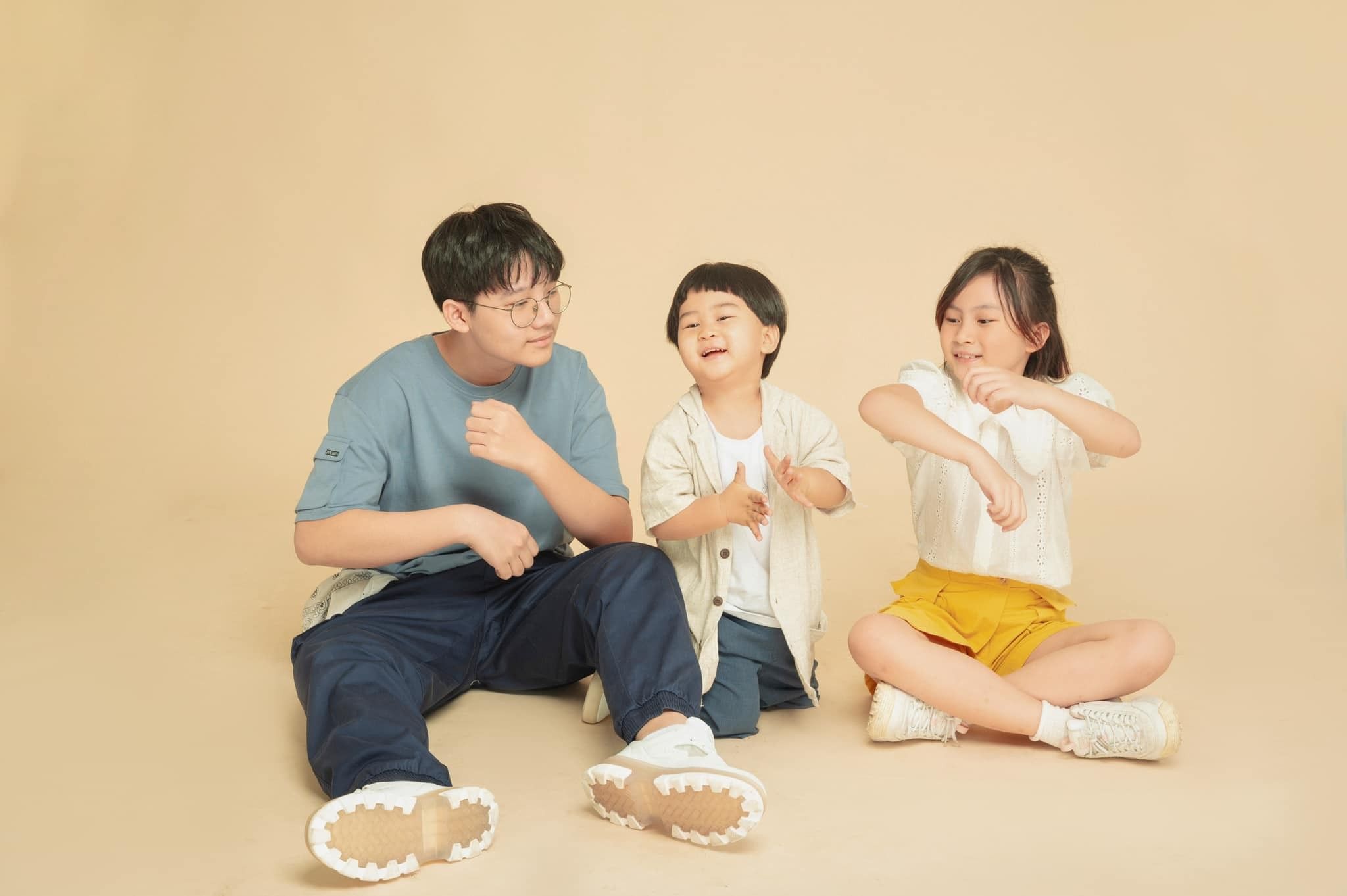 Cậu nhóc vui vẻ bên gia đình, là anh cả của một cô em gái dễ thương và một cậu em trai kháu khỉnh.