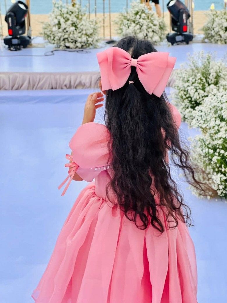 Cách đây không lâu, Khánh Thi đăng tải loạt ảnh Kubi và Anna diện đồ hồng nổi bật. Trong đó, ái nữ giống hệt nàng công chúa khi khoác lên mình chiếc váy màu hồng bồng bềnh và nơ tông xuyệt tông.