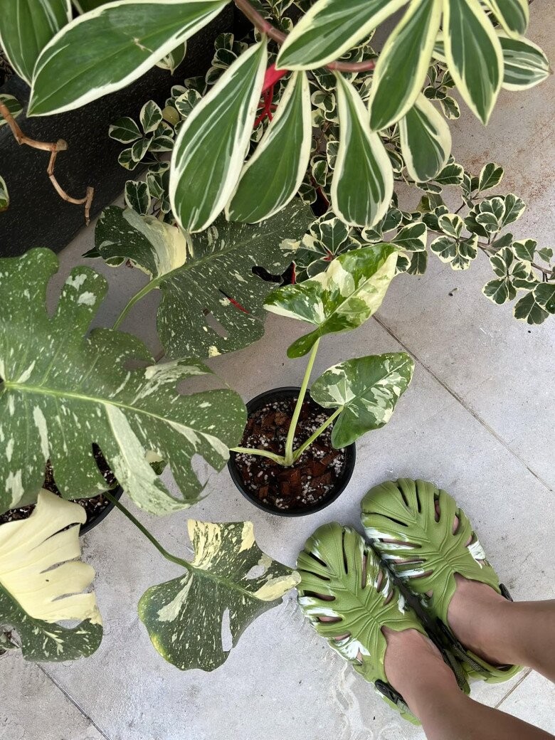 Nữ diễn viên trồng cả trầu bà đột biến và dí dỏm: "Mua đôi dép đi làm vườn, đánh dấu việc bị mê những chiếc lá đột biến... mà sao nhìn hoài nó vẫn giống miếng rau câu sơn thuỷ".