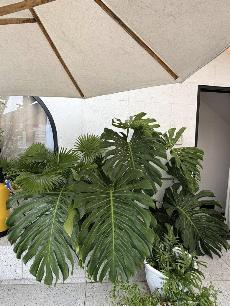 Trước đây, có lần cô chia sẻ: "Hồi mới trồng Monstera, biết là cây ưa mát mà khoái sân thượng có 1 cây để chiều ra ngồi nhìn ngắm thế là trồng xuống, mua cái cây có 800k, xong phải mua thêm cây dù 1 triệu 8 và 1 cái lưới che nắng 350k để che cho nó, biết chơi cây hết sức".