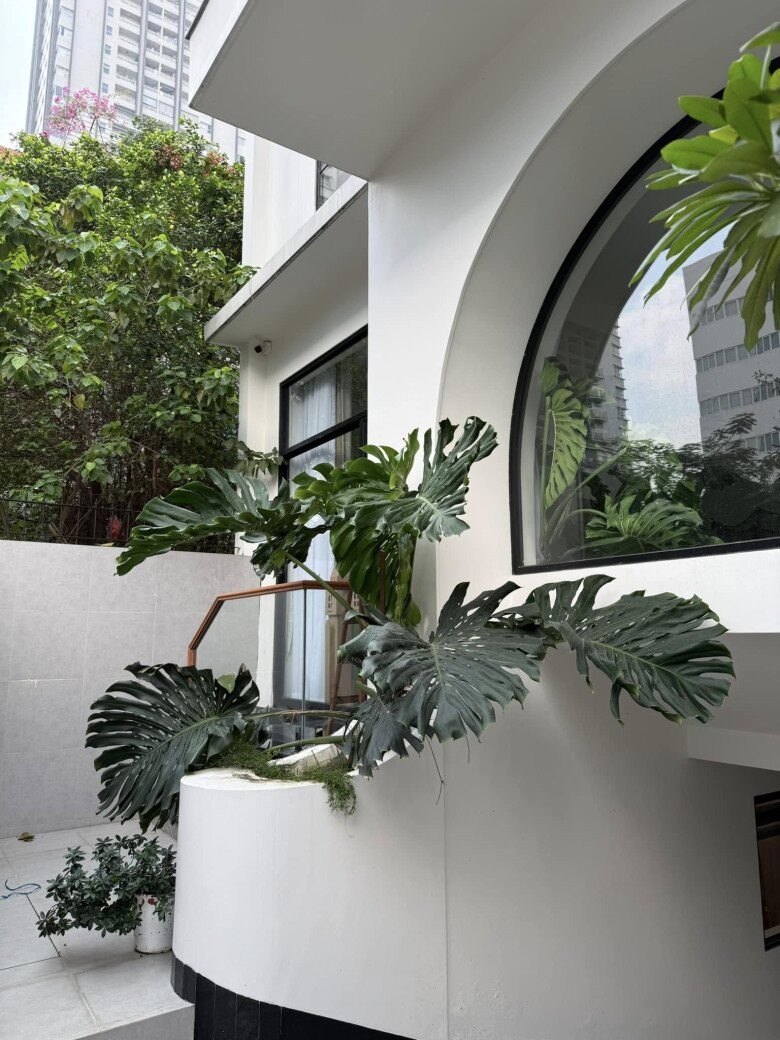 Trong trường hợp của Vân Trang, có thể thấy cô đã trồng cây sát bức tường cong trắng của biệt thự – vị trí không chỉ đảm bảo ánh sáng khuếch tán tốt mà còn tôn dáng lá cây uốn lượn, tựa như một tác phẩm nghệ thuật sống. Tuy nhiên, khi nắng thay đổi hướng hoặc cường độ, những chiếc lá khổng lồ dễ bị cháy nếu không kịp điều chỉnh vị trí hoặc che chắn, dẫn đến tình trạng như ảnh.