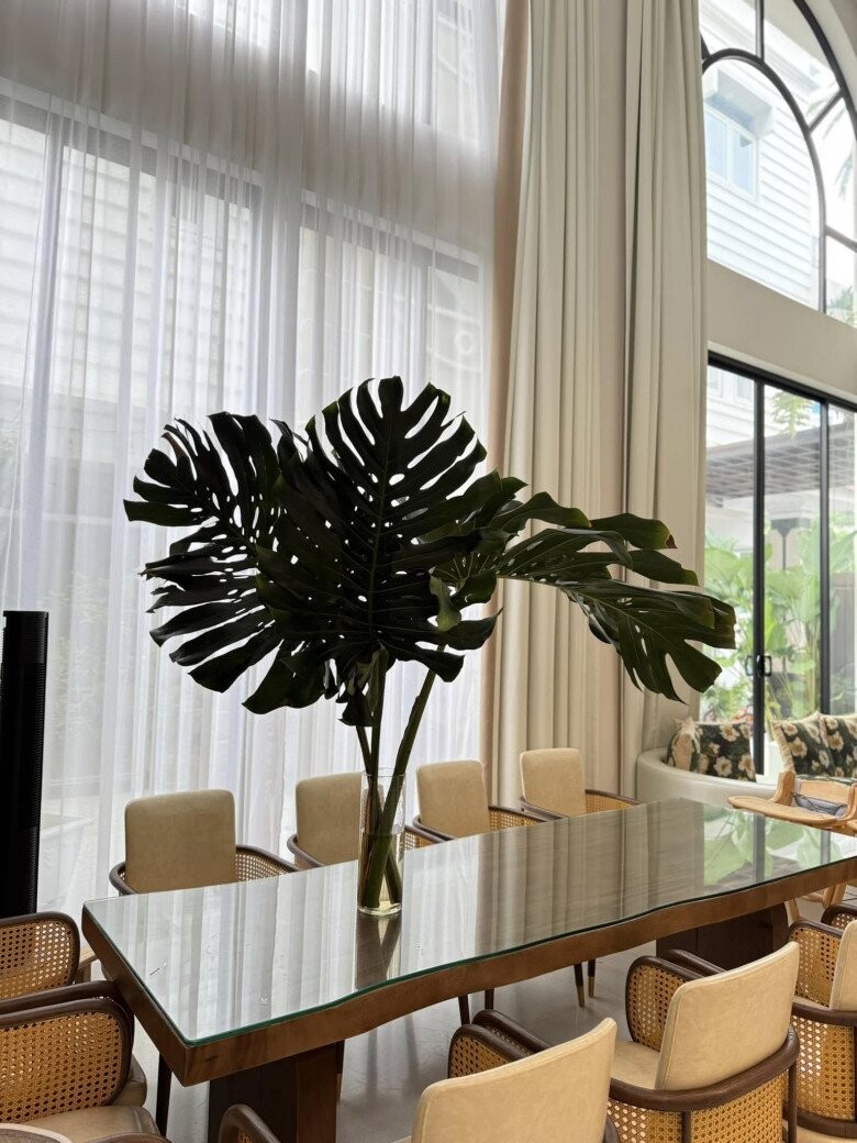 Không chỉ là điểm nhấn trang trí, Monstera còn được cho là mang ý nghĩa phong thủy tích cực: Hút tài lộc, xua đuổi tà khí, và đặc biệt là giúp thanh lọc không khí. Nhiều người lựa chọn đặt cây tại phòng khách, gần cửa sổ, ban công hoặc hiên nhà để tận dụng cả ánh sáng lẫn khí trời, vừa tốt cho cây vừa tăng sinh khí cho ngôi nhà.