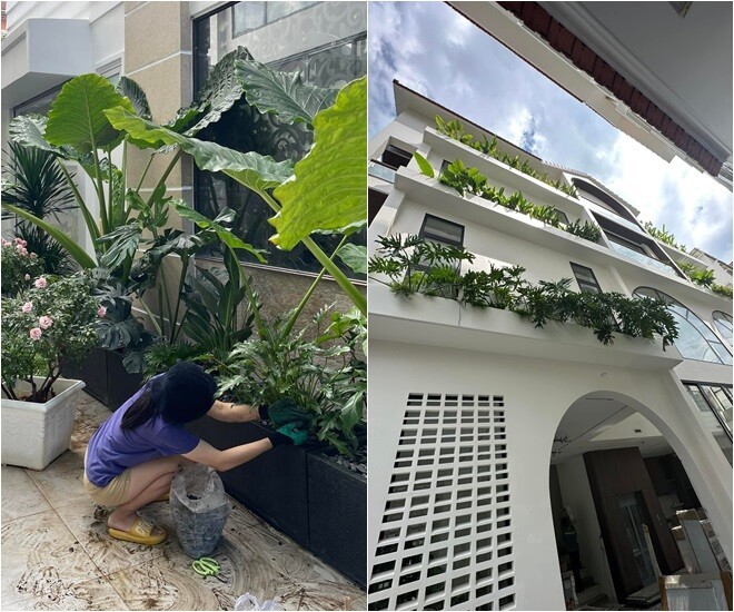 Vân Trang trồng trầu bà đan xen nhiều loại cây cảnh khác ở nhiều góc khác nhau trong biệt thự, từ trước nhà tới ban công, sân thượng...