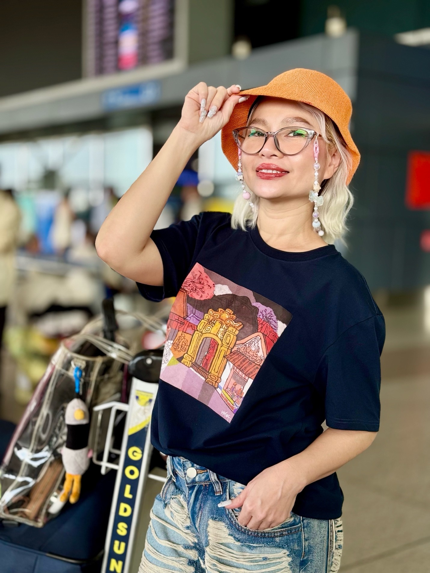 Phong cách trẻ trung, năng động của CEO Tuyết Nhi ở sân bay khi lên đường đi du học ngắn hạn ở New Zealand sáng nay, 17/10.