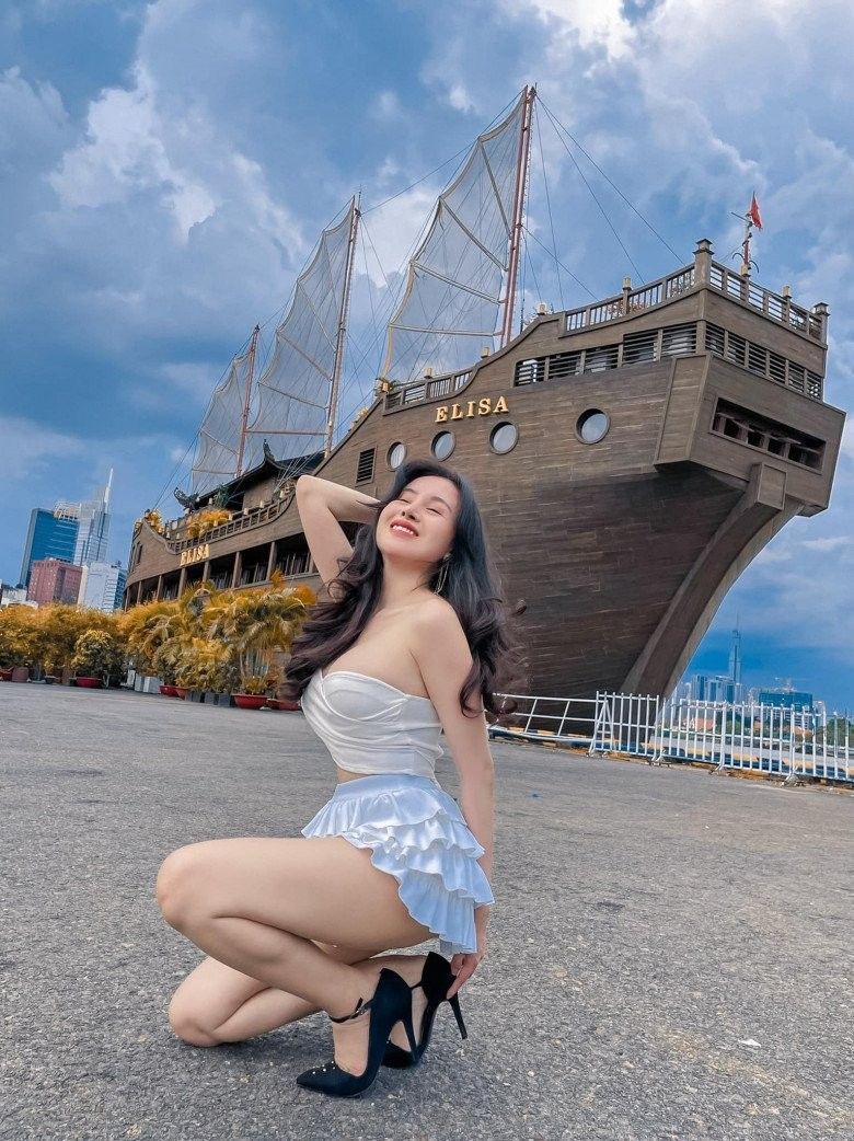 Phần bụng của cô khi ngồi cũng thon gọn, bé tí. Đôi chân trắng ngần không tì vết còn nổi cộm rõ nét cả bắp chuột rắn chắc. Bà Tưng chia sẻ, chiếc bắp chuột lên cơ đó là cả thành quả tập luyện vất vả của bóng hồng. Dù đã gầy và ốm hơn xưa rất nhiều nhưng cô thú nhận, không muốn giảm cân sâu. 9X xứ Nghệ thích body có chút cơ bắp, khoẻ mạnh chứ không phải gout mình hạc xương mai.