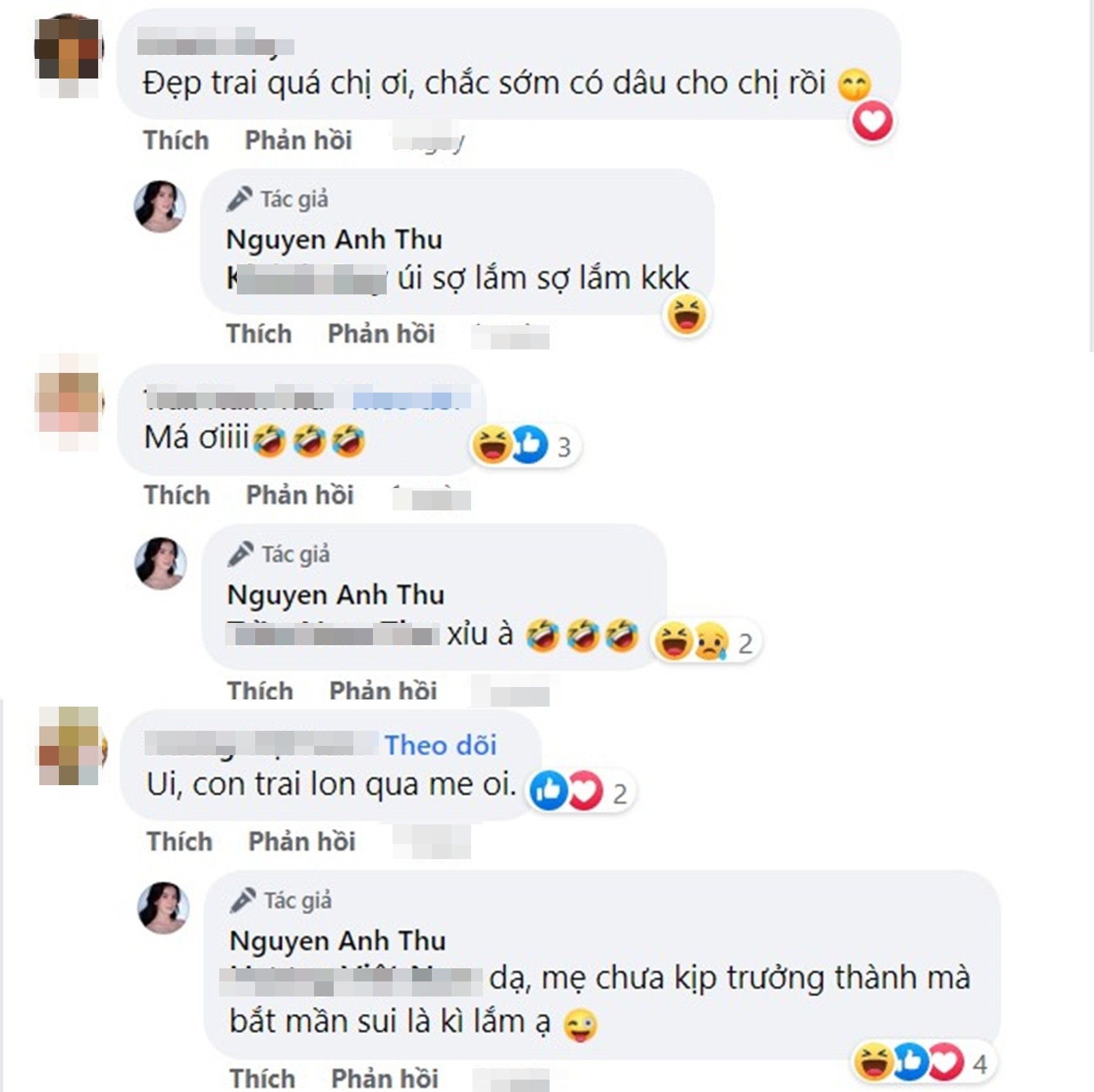 Bên dưới bài đăng, netizen ào ạt dành tặng nhiều lời khen có cánh cho vẻ đẹp của 2 mẹ con. Nhiều chị em còn tranh thủ xin gọi mẹ chồng vì Tiểu Long quá đẹp. Song cô nàng lại hài hước bày tỏ vẫn chưa sẵn sàng lên chức... bà nội.