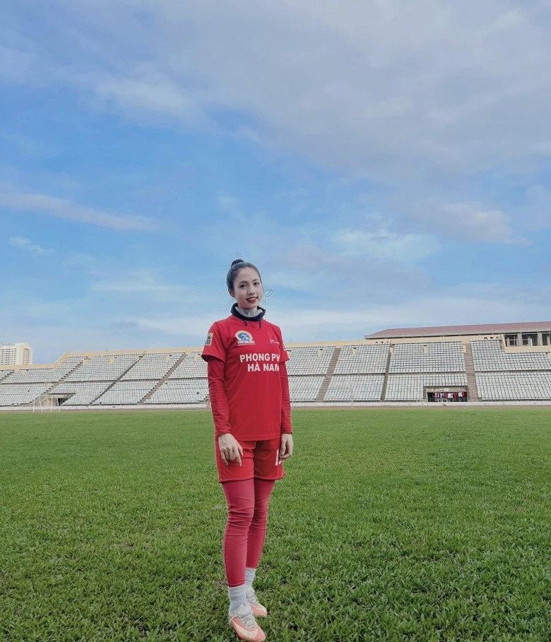 Cô nàng đẹp rạng ngời khi lên sóng truyền hình. Nhìn hình ảnh đời thường của cô gái Nam Định, khó có thể tin cô nàng là một cầu thủ trẻ nhiều năm lăn lộn nắng mưa trên sân cỏ.