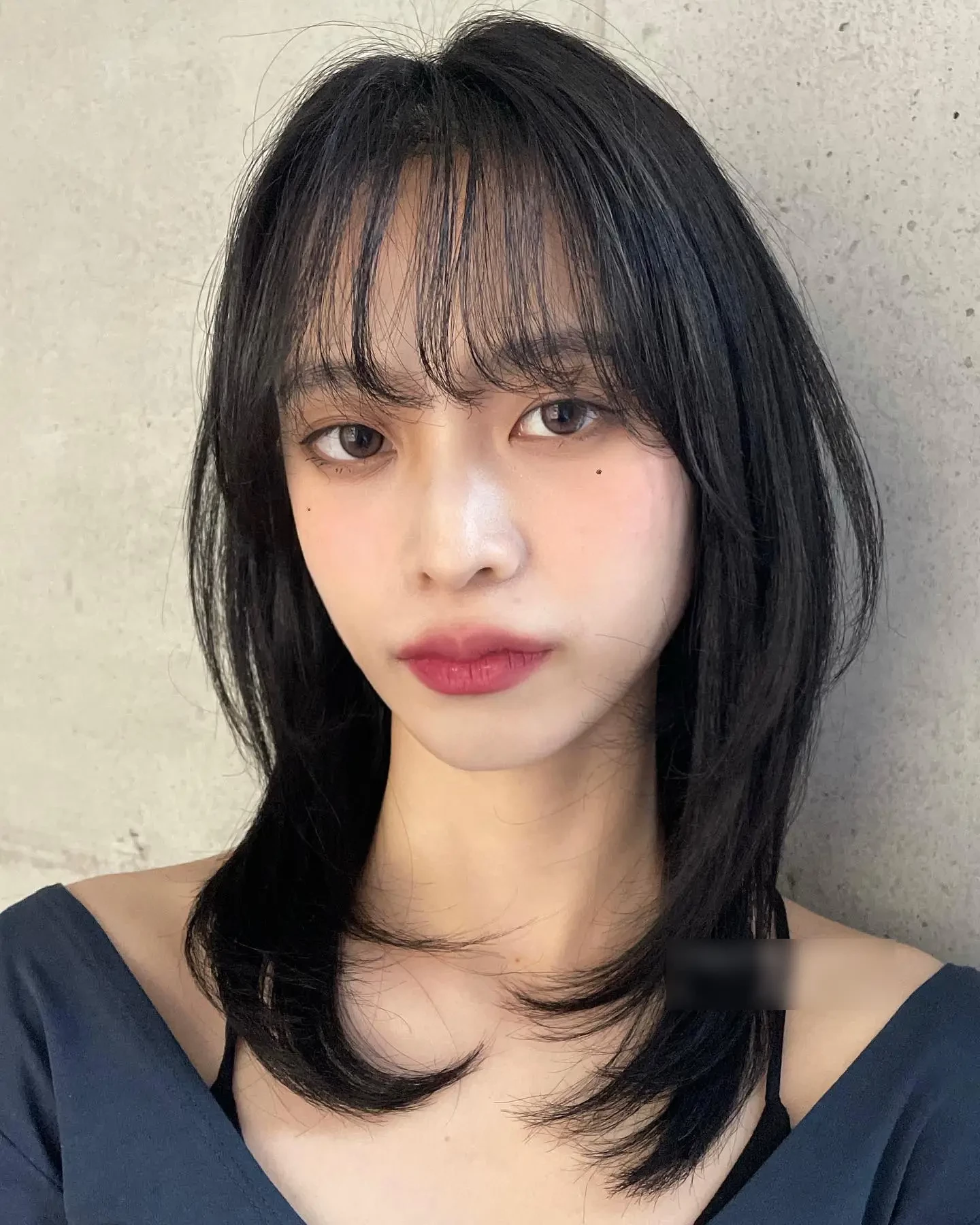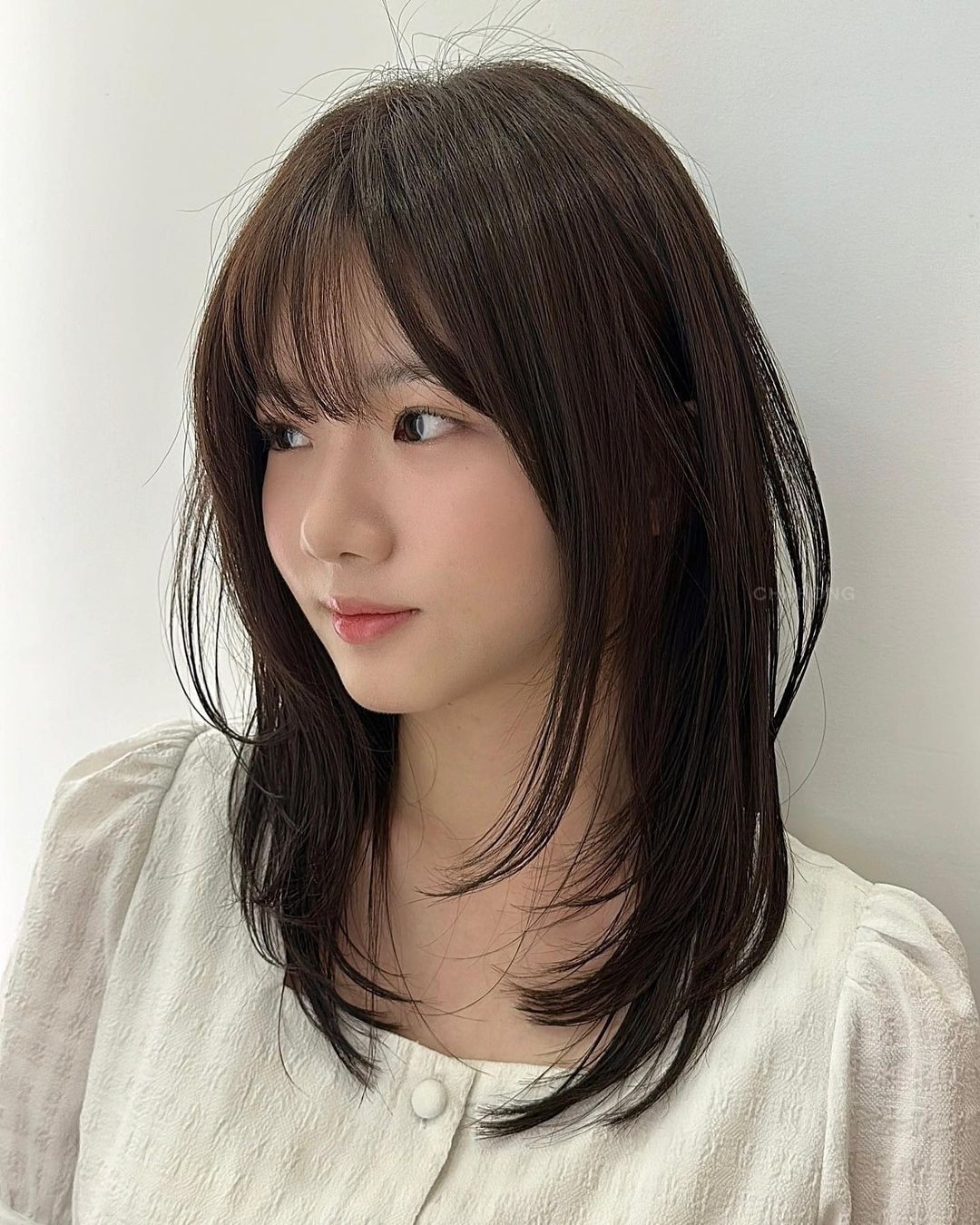 Mái thưa từ lâu đã trở thành xu hướng được nhiều người yêu thích, đặc biệt là trong phong cách làm đẹp Hàn Quốc. Khi kết hợp với tóc ngang vai, mái thưa giúp tổng thể gương mặt trông trẻ trung và mềm mại hơn.