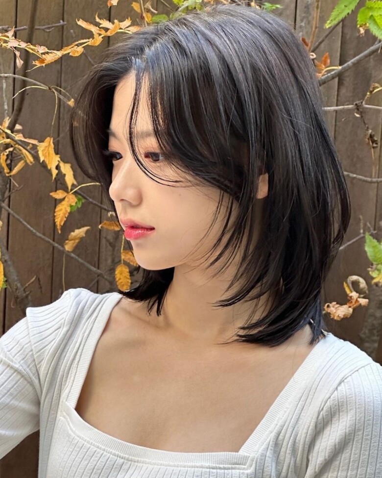Tóc ngang vai rẽ ngôi lệch giúp tạo độ phồng tự nhiên, khiến mái tóc trông dày và bồng bềnh hơn. Kiểu tóc này còn giúp gương mặt cân đối, thanh thoát hơn, đặc biệt phù hợp với tóc mỏng hoặc mặt tròn.