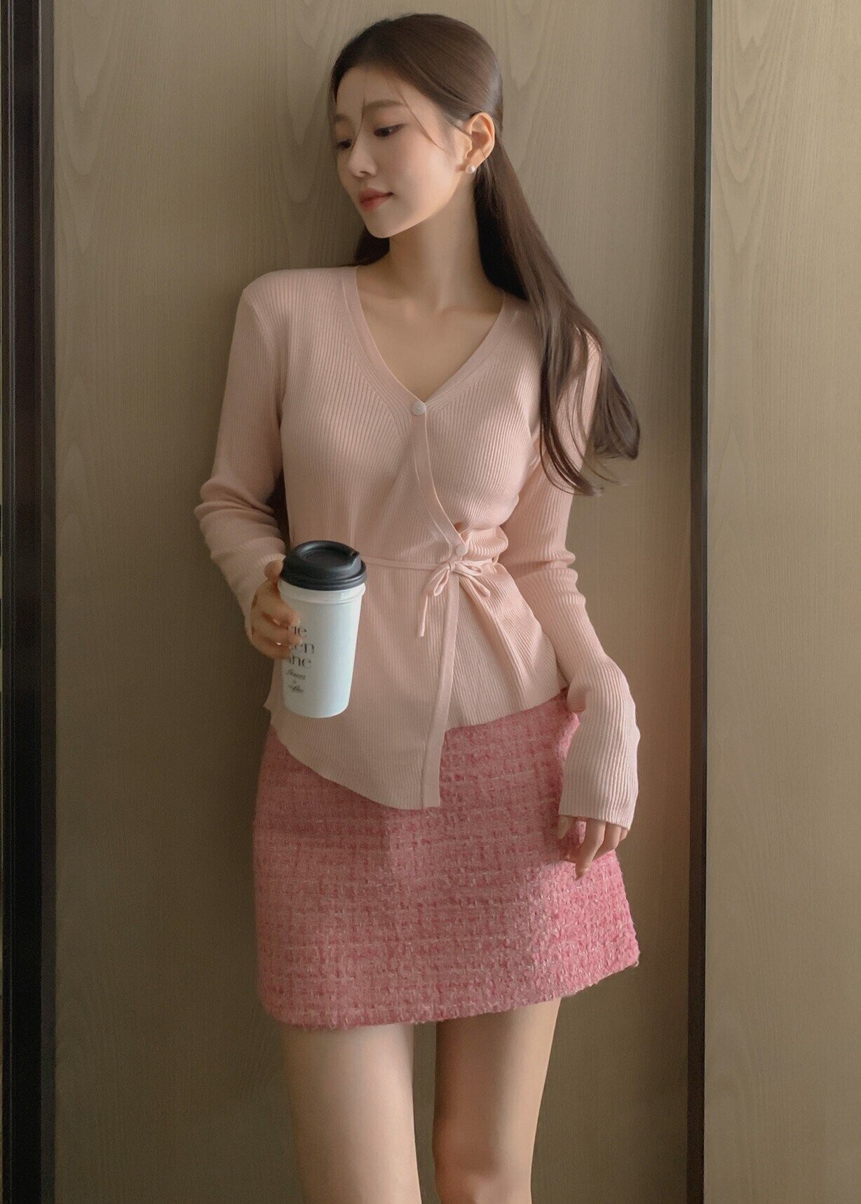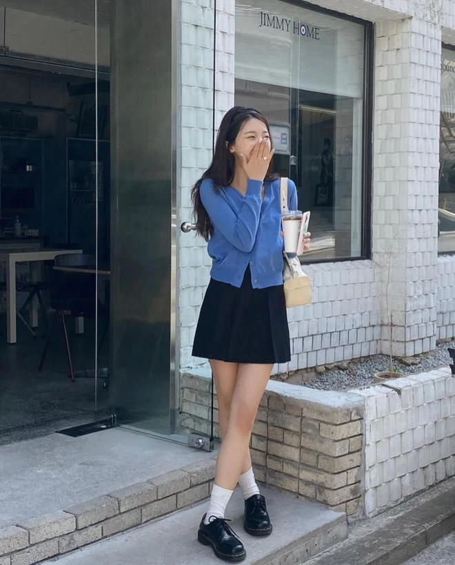 Áo cardigan phối cùng chân váy ngắn mang đến vẻ nữ tính, nhẹ nhàng nhưng không bánh bèo. Kiểu áo này giúp outfit gọn gàng, dễ mặc trong nhiều hoàn cảnh khác nhau.