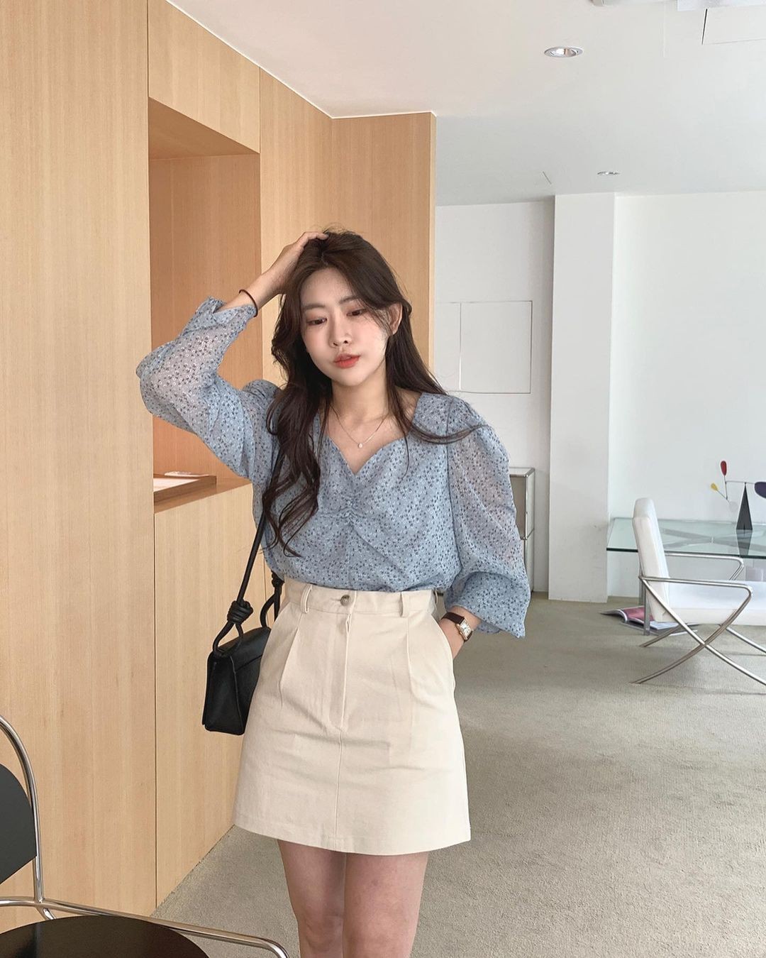 Nếu muốn mặc chân váy ngắn theo hướng tinh tế và lịch sự hơn, áo blouse chính là lựa chọn lý tưởng. Áo blouse với thiết kế mềm mại, tay bồng nhẹ hoặc cổ nơ giúp cân bằng nét trẻ trung của chân váy ngắn bằng sự nữ tính và thanh lịch. Đây là công thức được nhiều chị em áp dụng khi cần một outfit chỉn chu hơn, chẳng hạn đi làm hoặc tham dự các buổi gặp gỡ nhẹ nhàng.