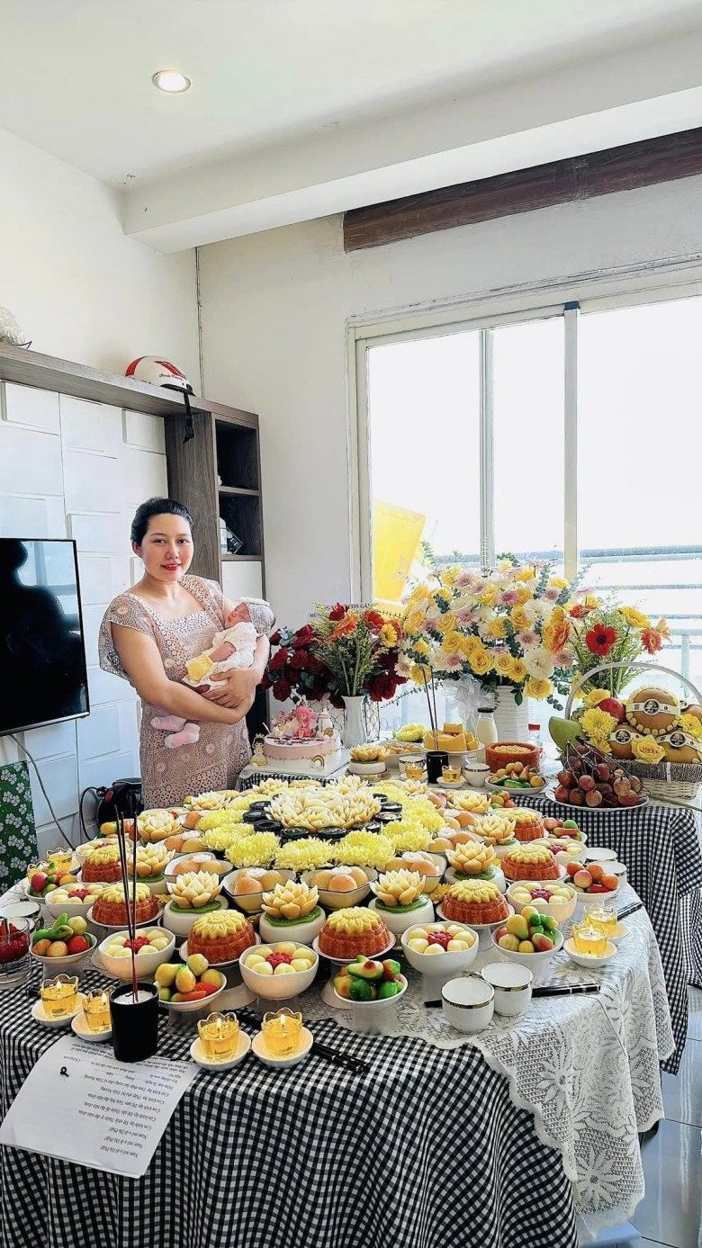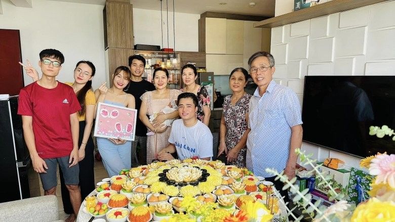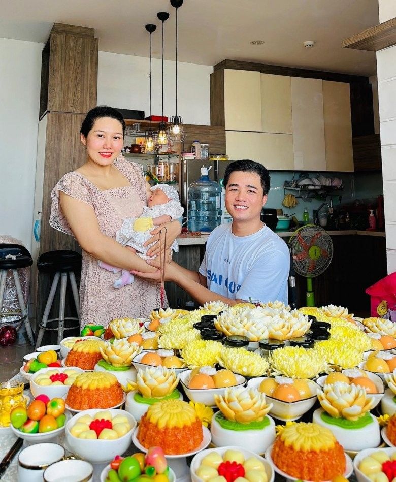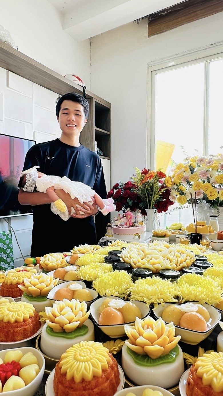 Tròn một tháng con chào đời, nam Youtuber đã tổ chức tiệc đầy tháng, mời bố mẹ và bạn bè đến tham dự. Mâm cúng được trang hoàng đẹp mắt, khiến không ít người xuýt xoa "xin info".