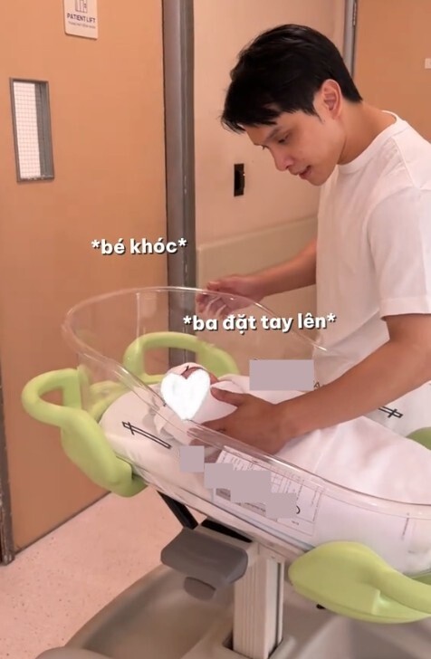 Theo đó, sau khi được cô điều dưỡng thông báo "Ba vô kiểm tra em bé cùng với cô nha", doanh nhân Phát Nguyễn đã rất háo hức lại nôi em bé nằm để ngắm mặt con trai đầu lòng.