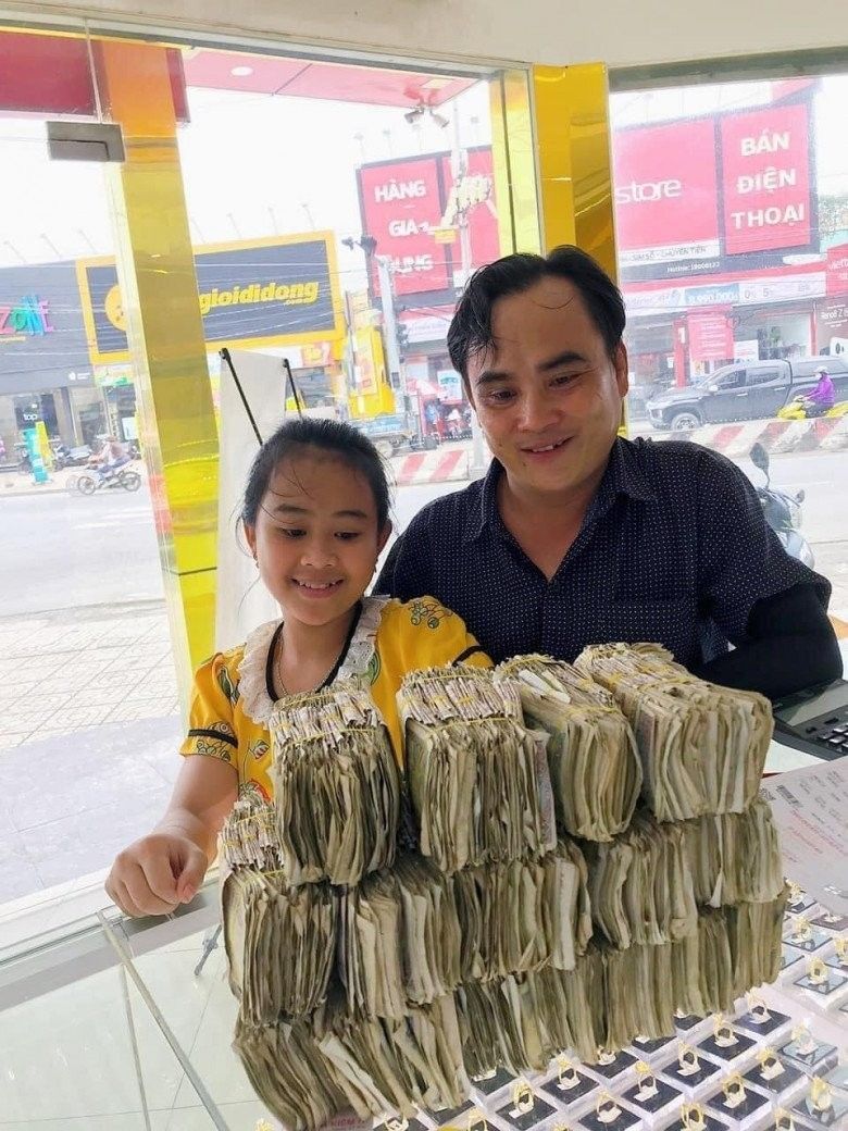 Khi đó, anh Tường không có mặt ở cửa hàng nhưng được nhân viên kể lại chi tiết. Có lẽ trong nhiều năm kinh doanh của mình, ông chủ và nhân viên chưa bao giờ bắt gặp trường hợp nhiều tiền lẻ cần kiểm đếm như thế. Tổng số tiền mà bé Nhi mang đến là 6kg tiền mệnh giá 1.000 đồng, 2.000 đồng và 5.000 đồng với tổng giá trị lên đến hơn 27 triệu đồng. Cô bé quyết định dành toàn bộ số tiền tích cóp nhiều năm qua để mua tặng bố một chiếc lắc tay bằng vàng trị giá 27,7 triệu đồng.