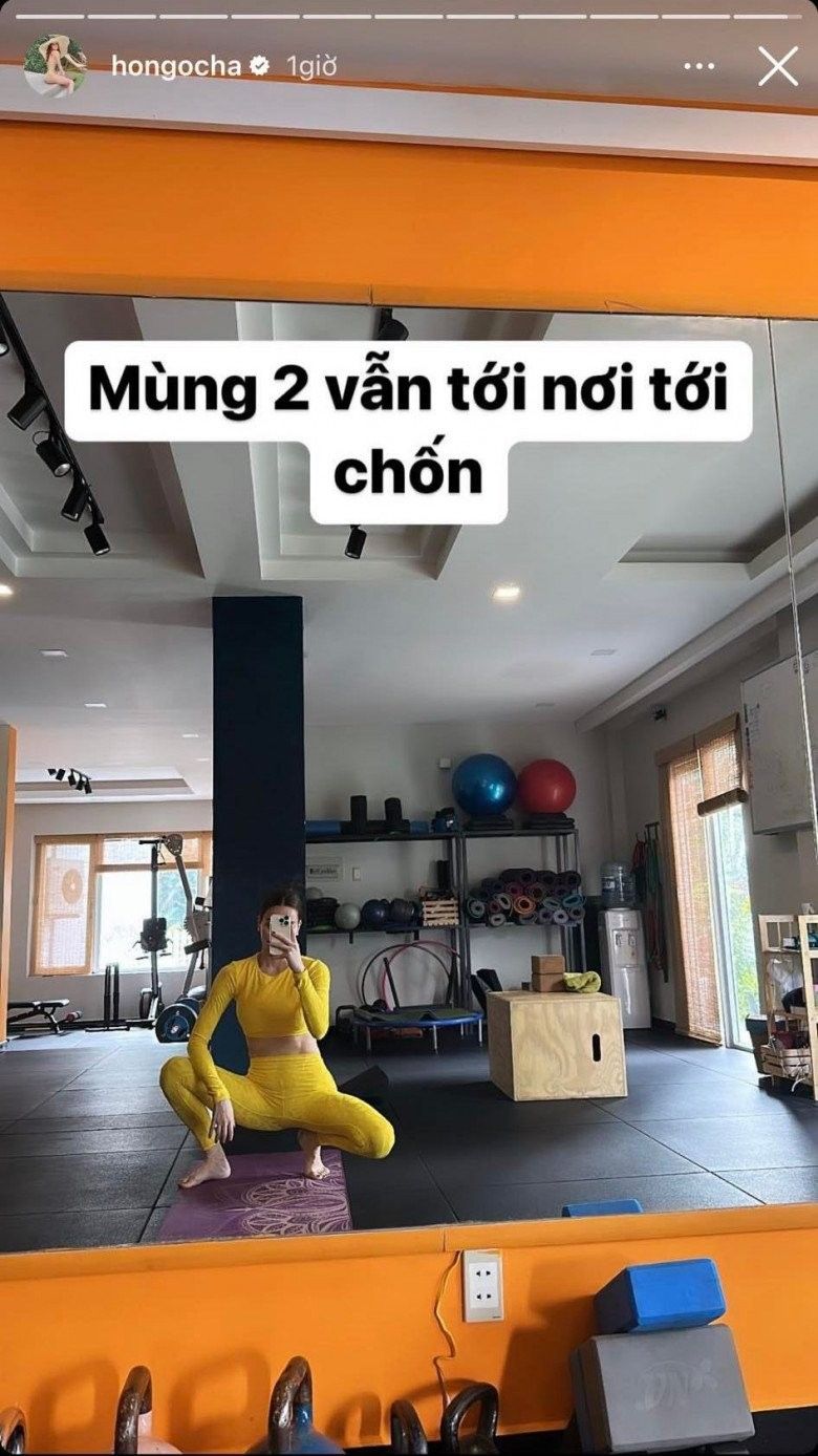Hồ Ngọc Hà sau khi sinh đôi xong lại ý thức nhiều hơn về câu chuyện giữ gìn sắc vóc. "Nữ hoàng giải trí" sau sinh đôi chỉ 1 tháng đã vội vàng tái xuất làm nghệ thuật. Vóc dáng của bà mẹ 3 con lúc này bị dân tình săm soi nhiệt liệt. Tuy có nhiều tấm hình soi rọi góc chụp "dìm hàng", phô vòng 2 không như mơ song quý cô gốc Huế đã sớm "phục thù". Người đẹp còn đăng đàn cám ơn anti-fan vì đã dành thời gian săm soi, đồng thời, chân dài 8X cũng chăm chỉ check in phòng tập tại gia để "độ dáng".