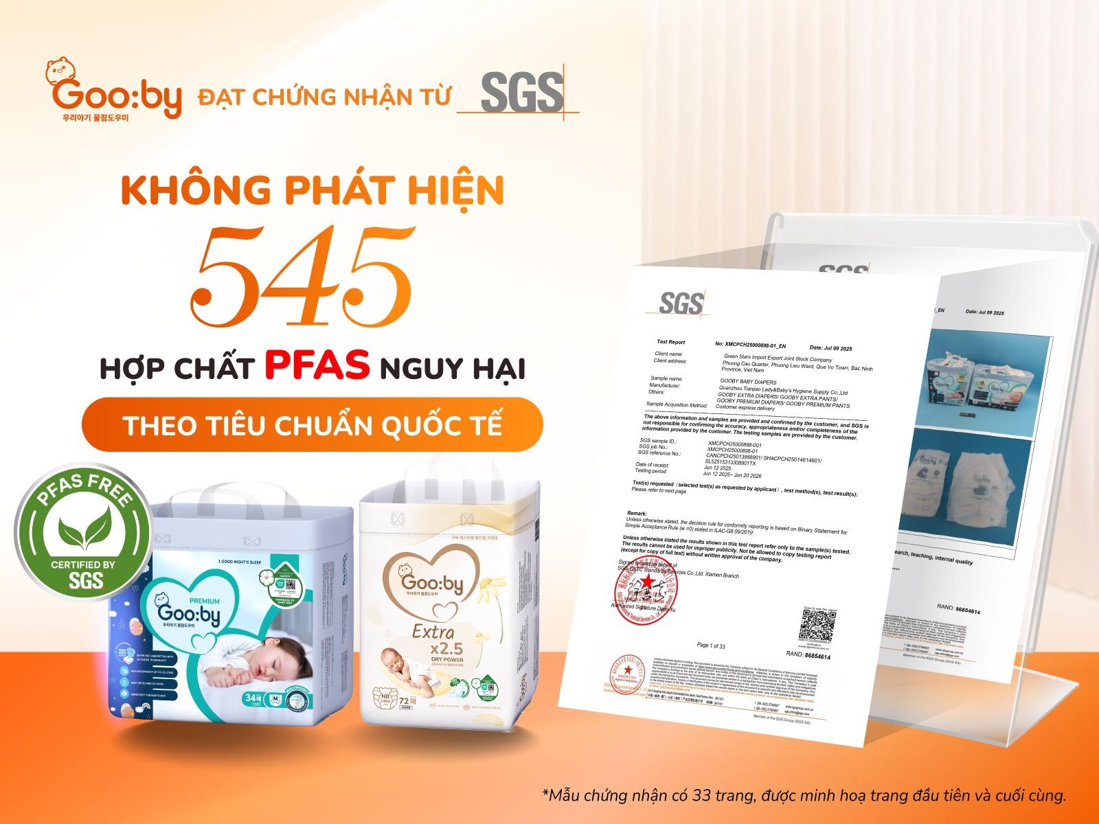 Việc đạt chứng nhận “không chứa 545 hợp chất PFAS” từ SGS đã thể hiện cam kết dài hạn của Gooby trong việc bảo vệ sức khỏe trẻ nhỏ dựa trên nền tảng khoa học và minh bạch.