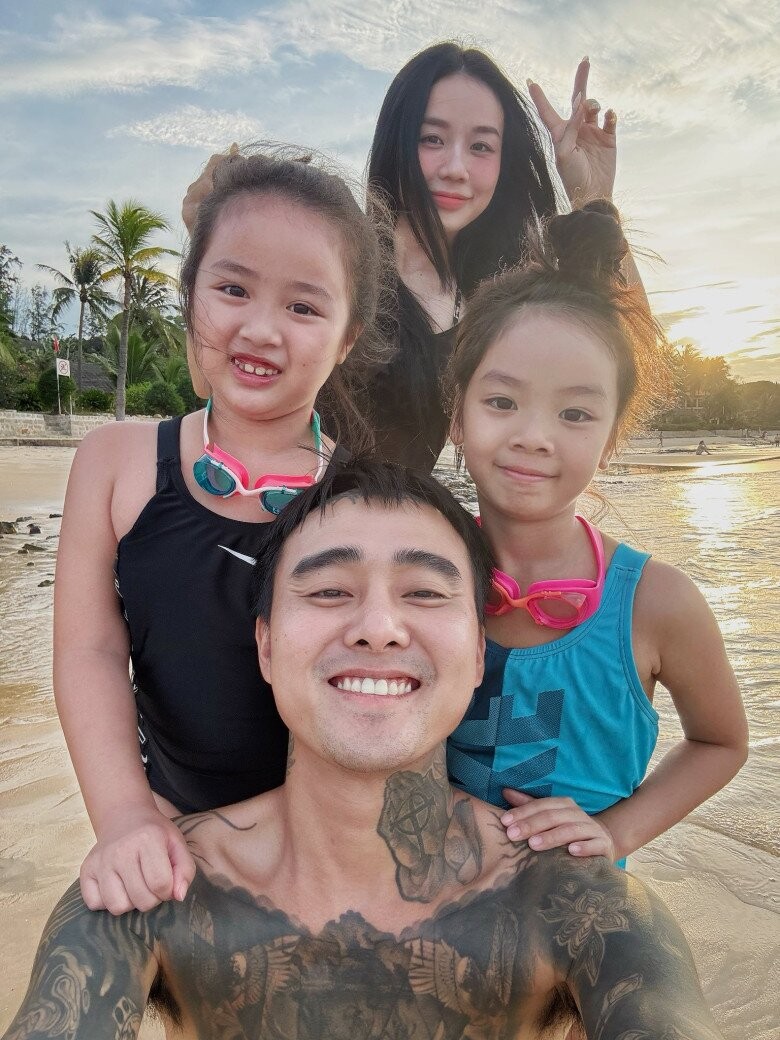 Anh thường xuất hiện trong các sự kiện trọng đại của các con như tiệc sinh nhật, sự kiện ở trường... Gà và Cún thân thiết, cũng rất vâng lời bố dượng Đạt G.