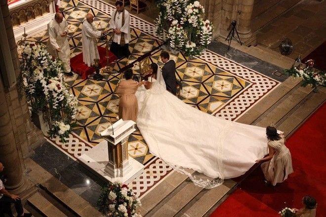 Hôn lễ như mơ của Marie. Cô nàng hóa thân thành nàng công chúa Lọ Lem đời thật khi diện một chiếc váy cưới lộng lẫy, hoành tráng.
