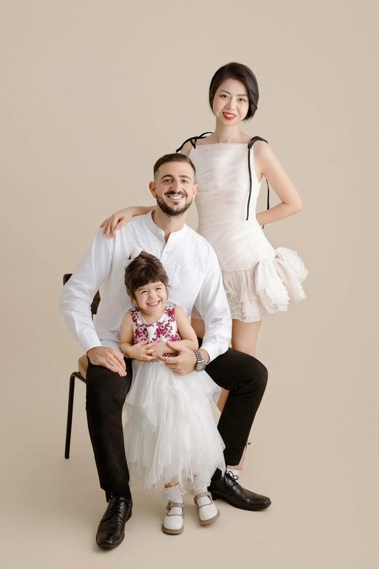 Cái này “trộm vía” lắm, do ông xã mình người Ý, văn hoá yêu thương gia đình nên cũng không khác gì mấy với người Việt mình đâu. Mình cũng có thoả thuận với ông xã là ba mẹ nên cùng 1 chiến tuyến, thì con mới không bị phân vân do không biết lắng nghe ai. Có nhiều khi mình nghĩ nhờ đồng vợ đồng chồng mà con mình mới có tính điềm đạm, lễ phép, vui vẻ như ngày hôm nay.
