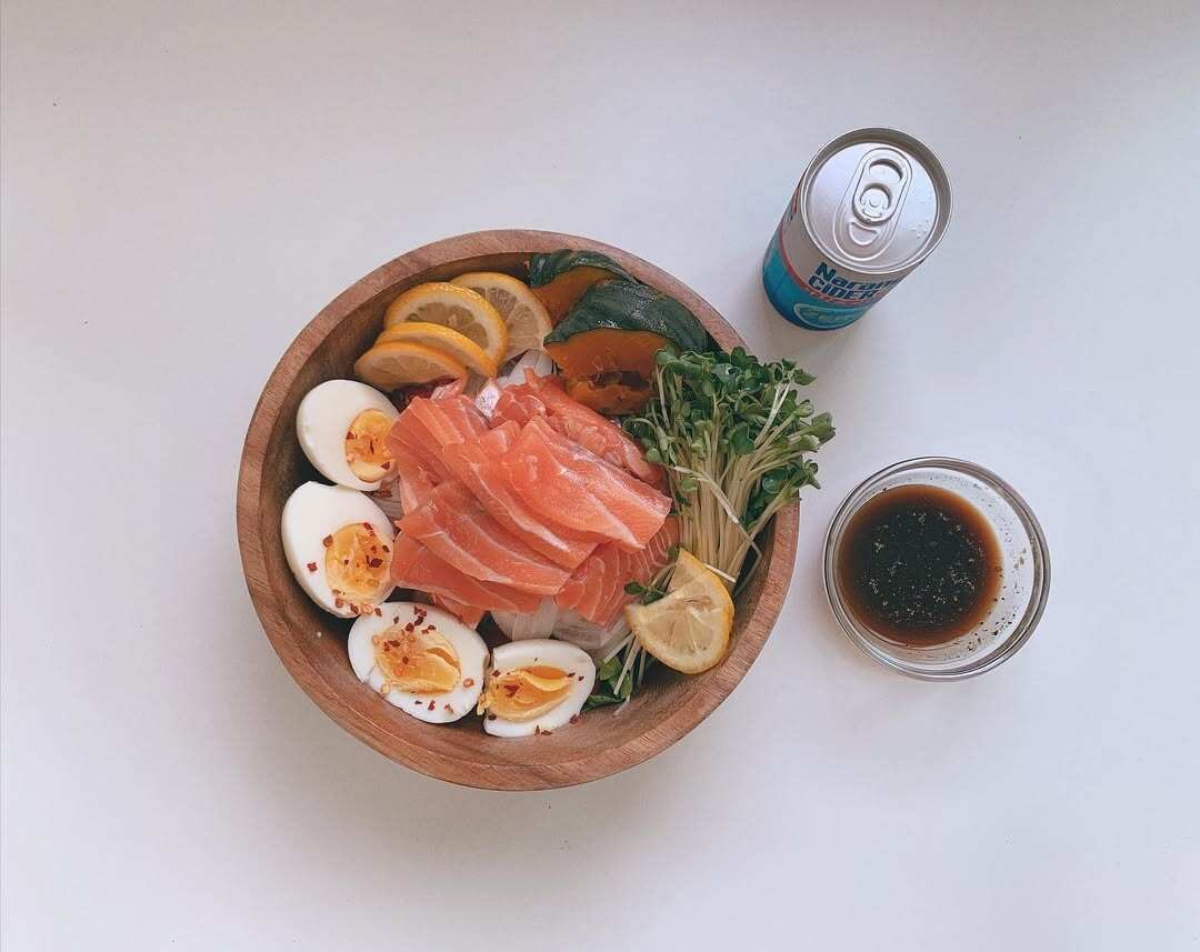 Cá hồi gần như xuất hiện liên tục trong thực đơn của cô gái Hàn Quốc này, từ bữa sáng, bữa trưa cho tới bữa tối. Đây là nguồn protein chất lượng cao, giàu omega-3 - loại chất béo tốt giúp giảm viêm, hỗ trợ trao đổi chất và cải thiện sức khỏe tim mạch.