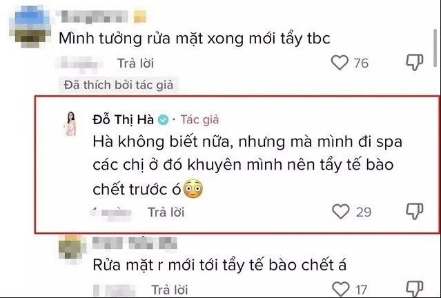 Tuy nhiên, thú vị hơn chính là cách Đỗ Thị Hà trả lời. Cô cho rằng, thứ tự này là mình áp dụng được khi học từ các chuyên viên trong spa chăm sóc da.