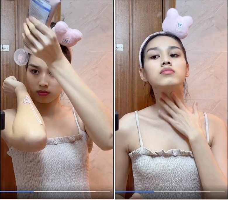 Tuy các bước thực hiện của chân dài có hơi lộn xộn nhưng không thể phủ nhận, làn da của người đẹp ở tuổi 22 rất đáng ghen tị. Chu trình chăm da của người đẹp chưa có sự tham gia của các hoạt chất mạnh như BHA, AHA hay Retinol mà chỉ là dưỡng ẩm thông thường nên có thể áp dụng được với nhiều chị em ở điều kiện kinh tế hạn chế.