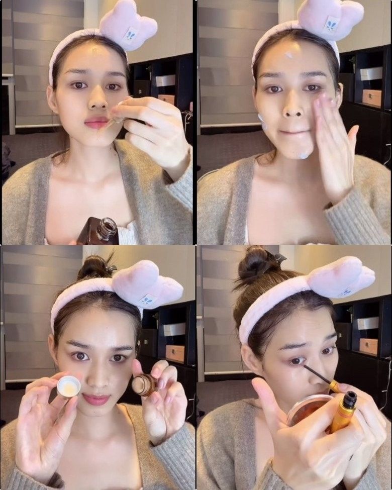 Nàng hậu sinh năm 2001 đính kèm dòng chú thích kêu gọi mọi người không được quên chăm sóc da đón Tết. Dù mùa Đông năm có lúc khá lạnh khiến nhiều người bị lười khoản dưỡng da. Người đẹp hé lộ chu trình chăm sóc da ban đêm thường ngày của mình. Cô dùng khá nhiều sản phẩm tới từ nhiều thương hiệu khác nhau.