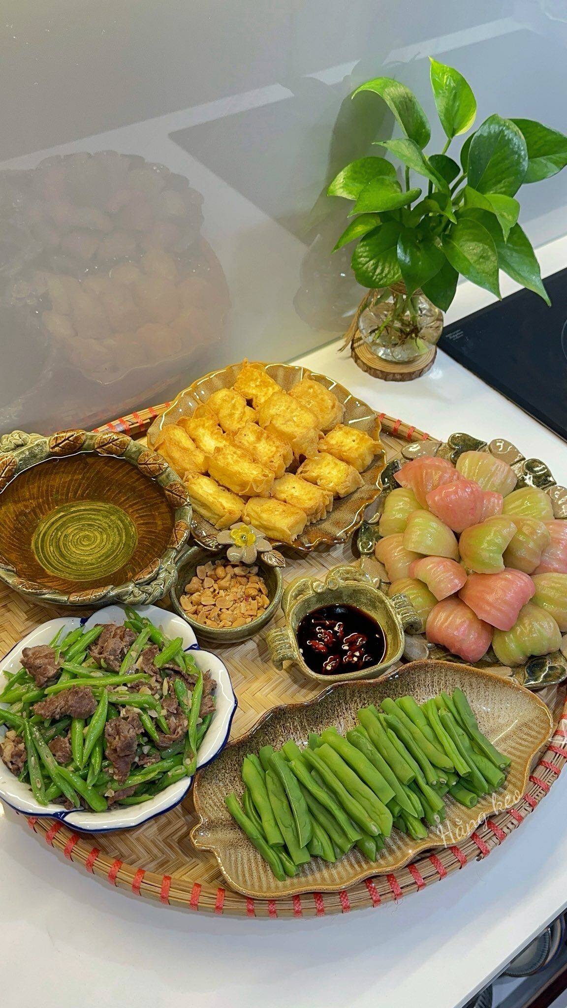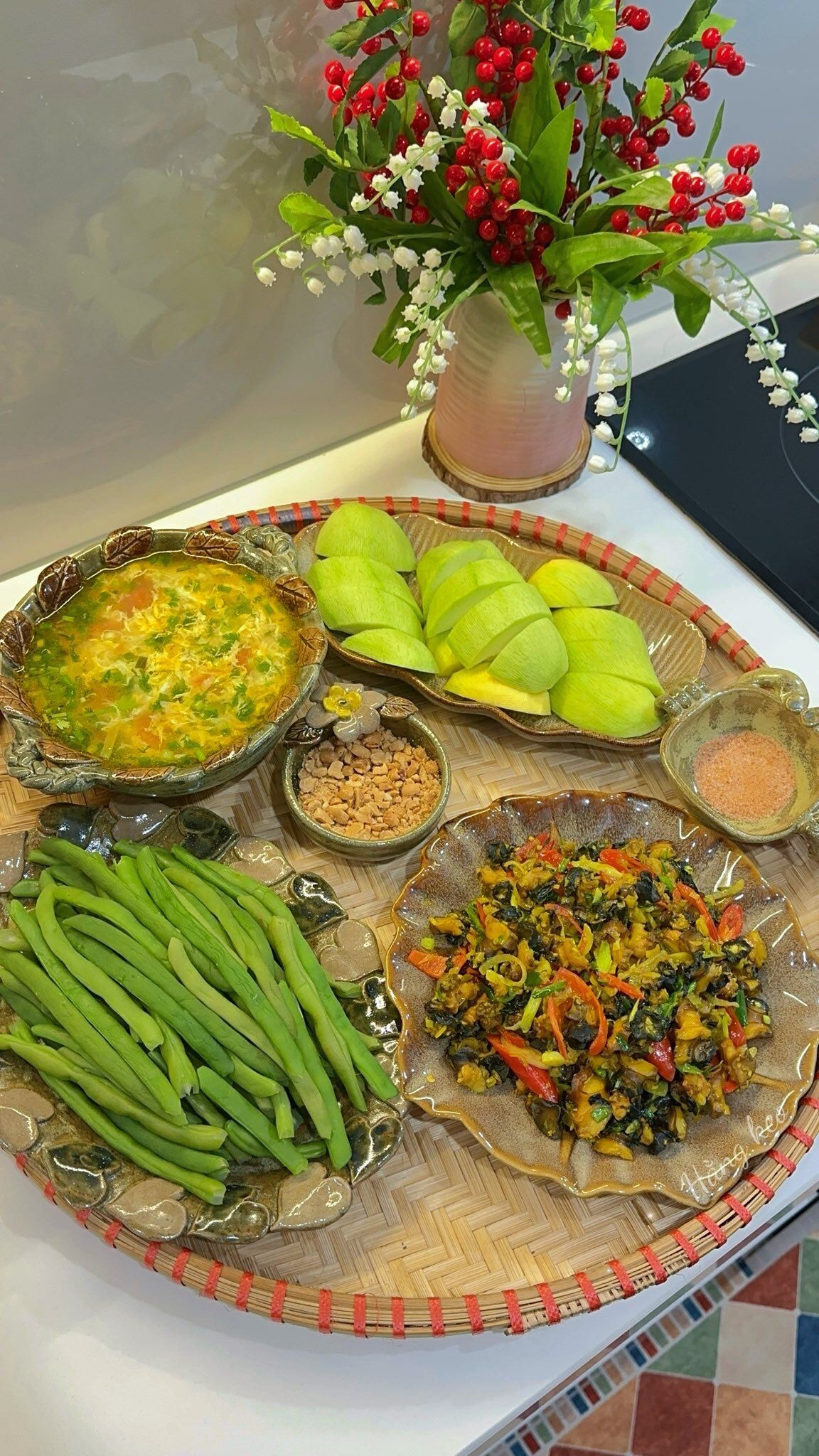Hiện tại, gian bếp nhỏ là nơi chị Hằng chăm chút bữa ăn cho gia đình bốn thành viên, gồm hai vợ chồng và hai bạn nhỏ. Dù bận rộn với công việc giảng dạy, chị vẫn luôn cố gắng sắp xếp thời gian để mỗi bữa cơm nhà đều được tươm tất. Thông thường, chị mất khoảng 45 phút đến một tiếng để hoàn thiện các món ăn; nếu có thời gian sơ chế trước từ sớm, việc nấu nướng sẽ còn nhanh chóng và thư thả hơn nhiều.