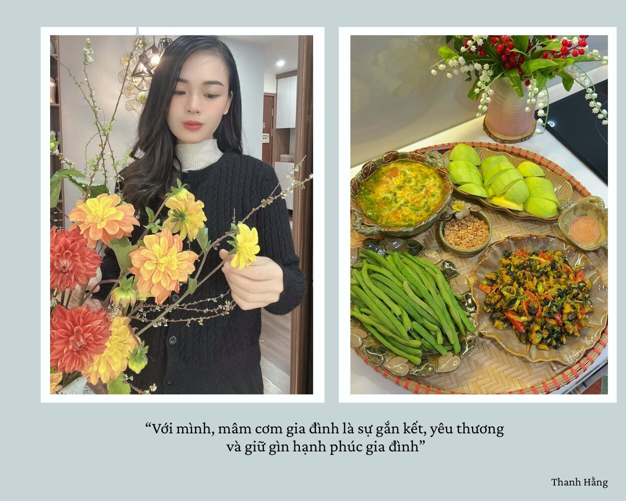 Sau tất cả, với chị Thanh Hằng bữa cơm gia đình không đơn thuần chỉ là việc thưởng thức những món ăn ngon, mà chính là khoảng thời gian quý giá nhất để mọi người quây quần, cùng kể cho nhau nghe những câu chuyện buồn vui sau một ngày dài.