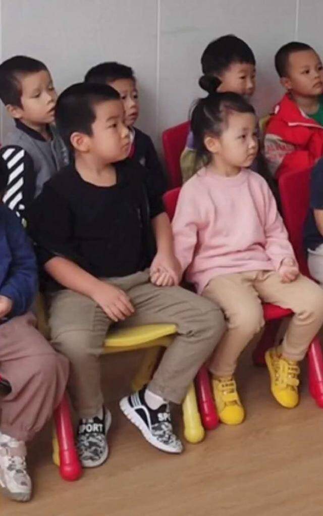 Cậu nhóc mẫu giáo nắm chặt tay bạn học nữ ngồi bên cạnh khiến ai nhìn thấy hình ảnh này cũng bật cười.