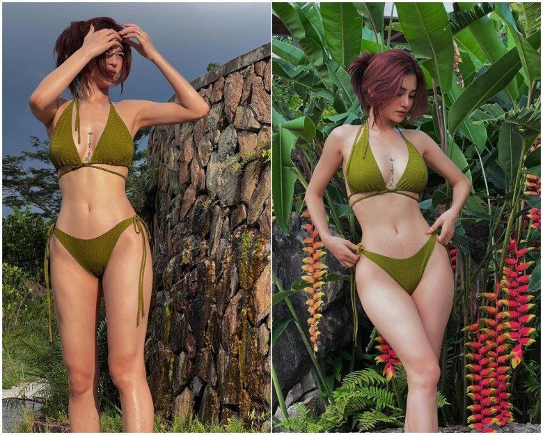 Mới đây, người đẹp tung loạt ảnh khoe dáng với trang phục áo tắm đầy khoẻ khoắn, năng động. Với sự kết hợp giữa croptop và quần bơi, outfit đi biển "nửa kín nửa hở" liền ghi điểm mạnh trong mắt dân tình.