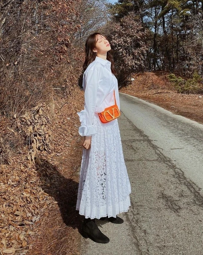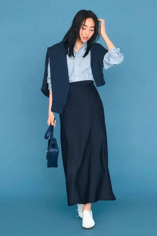 Một trong những cách phối áo sơ mi với chân váy midi đơn giản nhưng luôn mang lại hiệu quả cao chính là chọn hai món đồ cùng tông màu. Công thức diện đồ đơn sắc này không chỉ tạo cảm giác hài hòa, liền mạch mà còn giúp vóc dáng trông thanh thoát và cao ráo hơn.