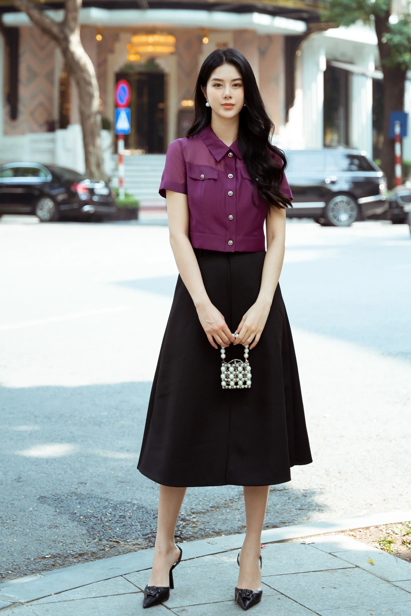 Trong số những item kết hợp ăn ý nhất với chân váy midi, áo sơ mi chắc chắn là lựa chọn không thể bỏ qua. Bộ đôi này mang đến tổng thể thanh lịch, chỉn chu và không bao giờ lỗi mốt. Áo sơ mi tạo cảm giác chuyên nghiệp, cổ điển, trong khi chân váy midi giúp cân bằng vẻ mềm mại, nữ tính, từ đó tạo nên set đồ hài hòa và tôn dáng.