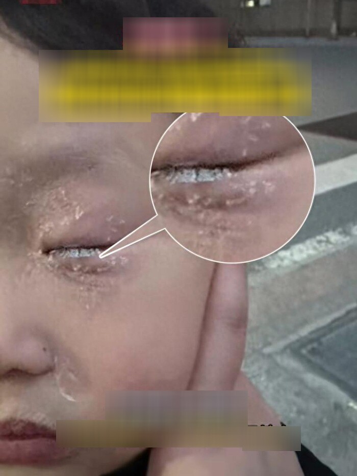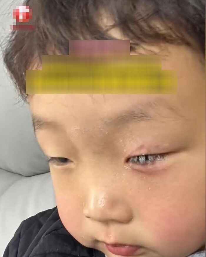 Tuy nhiên, chỉ vài giây sau, mí mắt của bé đã dính chặt, không thể mở ra được, khiến bố mẹ vô cùng hoảng loạn và lập tức đưa con đến bệnh viện.
