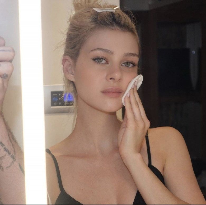 Để giữ làn da tươi trẻ, mịn màng, con gái tỷ phú Mỹ Nelson Peltz ưu tiên việc dưỡng ẩm. Cô luôn mang theo nước hoa hồng, thỉnh thoảng xịt lên da để làm dịu và cấp nước. Mỗi tối, trước giờ đi ngủ, người đẹp chú trọng bước làm sạch gồm tẩy trang, rửa mặt, sử dụng mặt nạ đất sét thay vì mặt nạ giấy. Bên cạnh kem dưỡng ẩm cho da mặt, Nicola chăm sóc vùng da quanh mắt bằng kem đặc trị. Khi ra ngoài, cô luôn bôi kem chống nắng, mang kính râm để hạn chế tia UV.