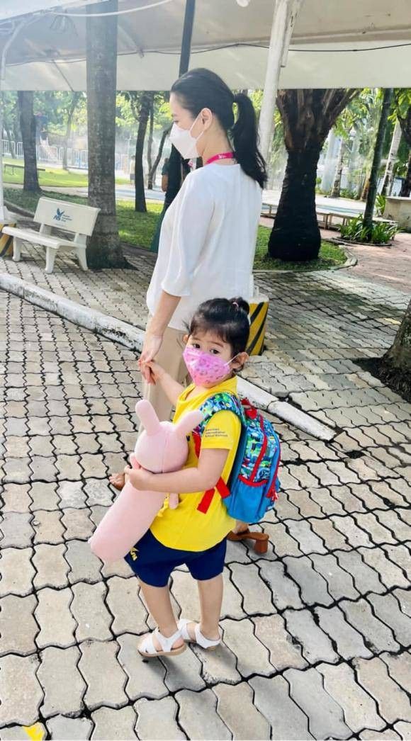 Chia sẻ về chuyện đi lớp của con gái Hera những ngày đầu tiên, nữ diễn viên sinh năm 1978 cho biết bé Hera không những không khóc mà còn ngoan và thích đi học. Do đó cô cũng rấy yên tâm đi công việc, gửi gắm con đến trường học. "Ngày đầu tiên đi học, mẹ dắt tay đến trường, nhưng em không hề khóc, em bé rất ngoan thật bất ngờ. Em đi học mà cả nhà thức sớm rộn ràng chuẩn bị, anh hai mê ngủ mà cũng thức sớm nói là muốn ngày đầu tiên bé đi học anh hai cùng với mẹ đưa bé đi, bé vô tới trường buông tay mẹ đi vô 1 lèo không thèm quay đầu nhìn lại 1 miếng luôn, bao nhiêu lo lắng của mẹ quá thừa rồi, em bé đi học mà cả đêm mẹ không chợp mắt được, giờ ngồi nhà nhớ em bé quá, rồi mong đến giờ đi đón em đi học về, em bé siêu nhân" - bà mẹ nói.