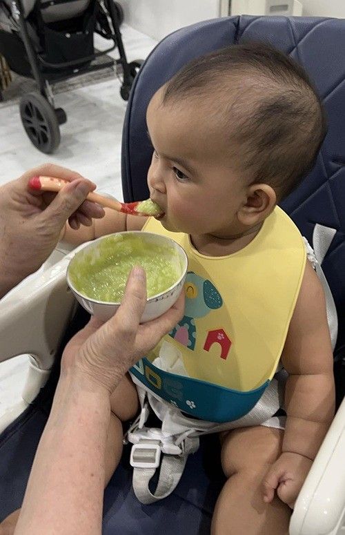 Nũ ca sĩ tâm sự: "Con đã ăn dặm được và thực đơn cũng đơn giản vì ăn chay không có nhiều sự lựa chọn. Nhưng tôi vẫn tìm hiểu để đưa ra khẩu phần ăn hợp lý, sao cho con ngon miệng mà vẫn cân bằng dinh dưỡng cho cơ thể. Để con đủ tinh bột, tôi cho bé ăn cháo, còn chất xơ lấy từ rau củ. Các nhóm chất khác sẽ được bổ sung từ một số loại đậu và sữa mẹ.