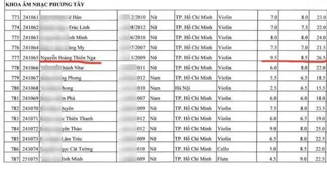 Thiên Nga đậu Thủ khoa chuyên ngành violin ở Nhạc viên Tp.HCM với số điểm rất cao.