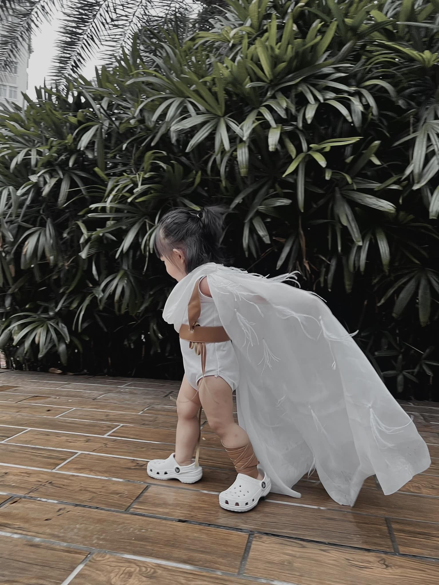 Không hổ danh là con gái của thiếu gia Sài Thành, Winnie đi chơi nhưng chưa từng mặc trùng 1 bộ đồ nào. Kể cả so với những lần đi trước, em bé cũng cực sành điệu và thời thượng. Các thiết kế mang màu kem có thêm chi tiết bèo nhún ở cầu vai là món dễ nhận diện trong chuyến đi này của em.