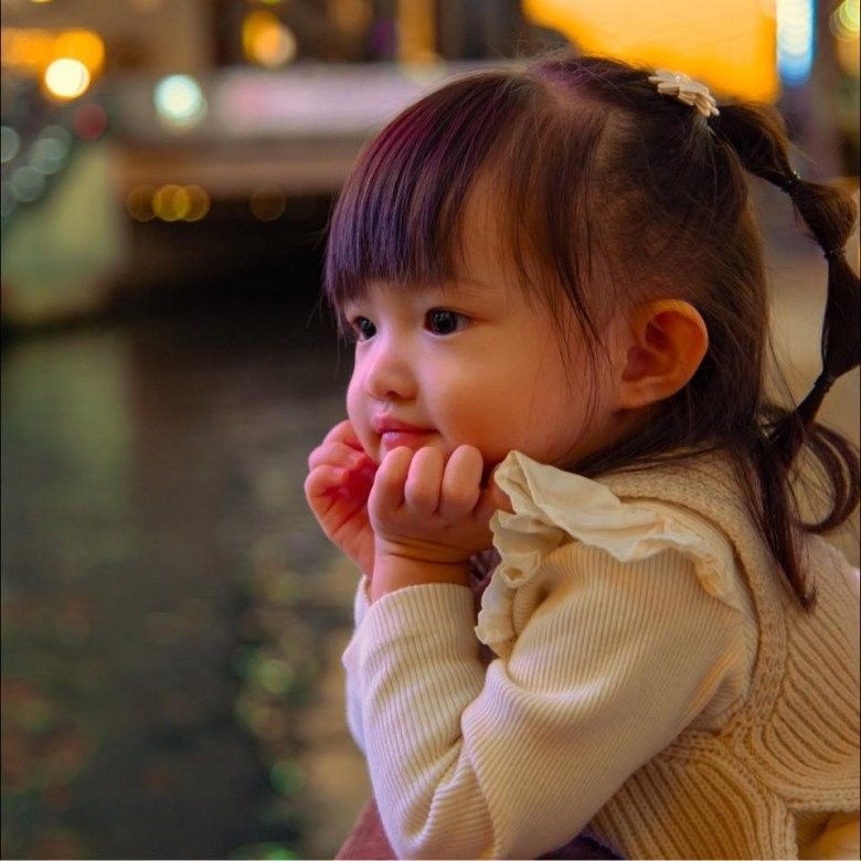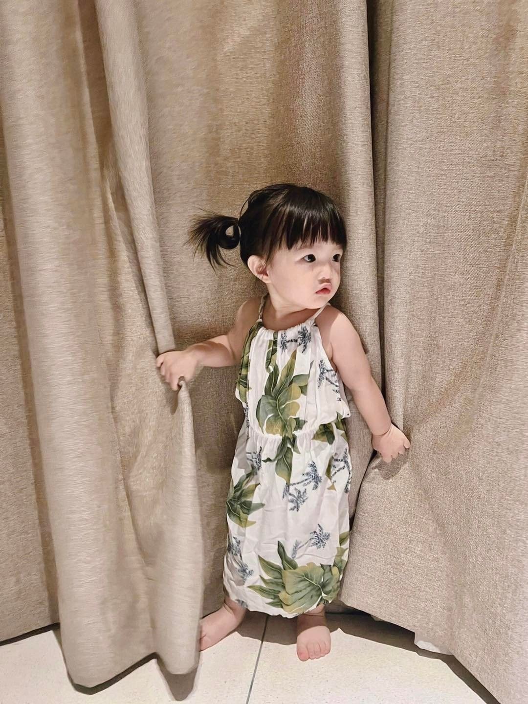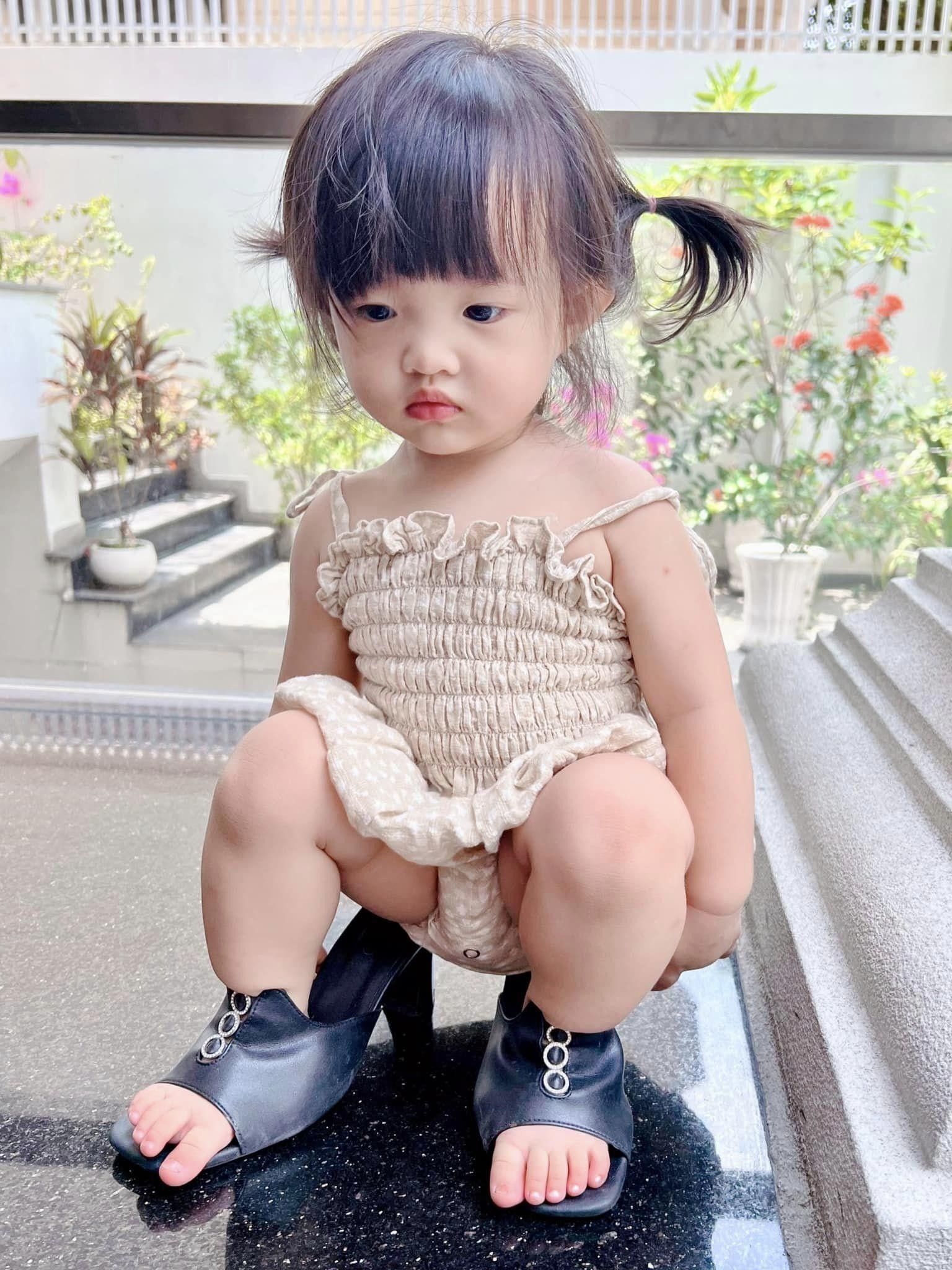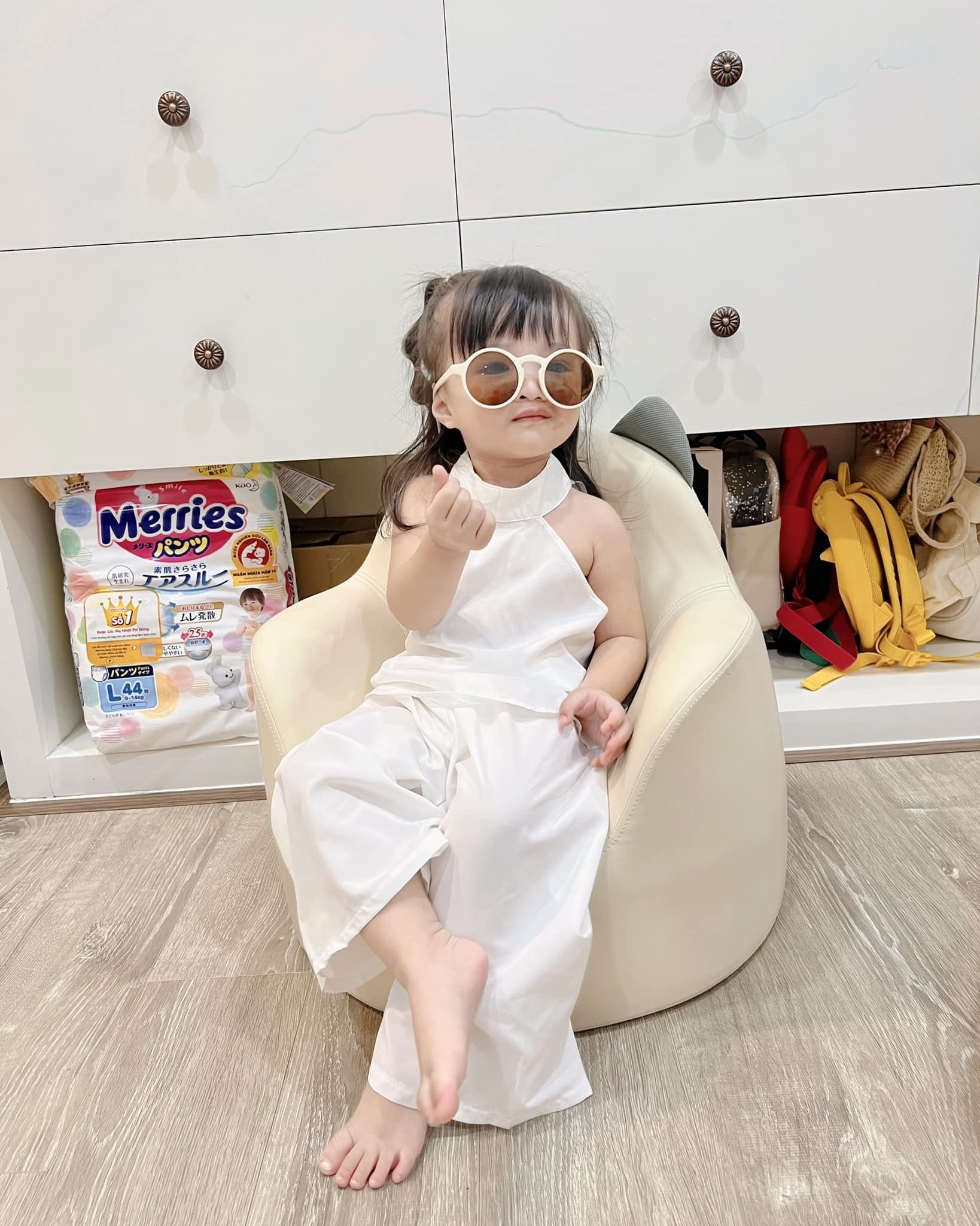 Vốn sở hữu nước da trắng ngần cùng gương mặt bầu bĩnh, dễ thương với những đường nét tươi tắn giống bố, Winnie còn thể hiện năng khiếu đặc biệt khi rất biết cách tạo dáng với áo quần.