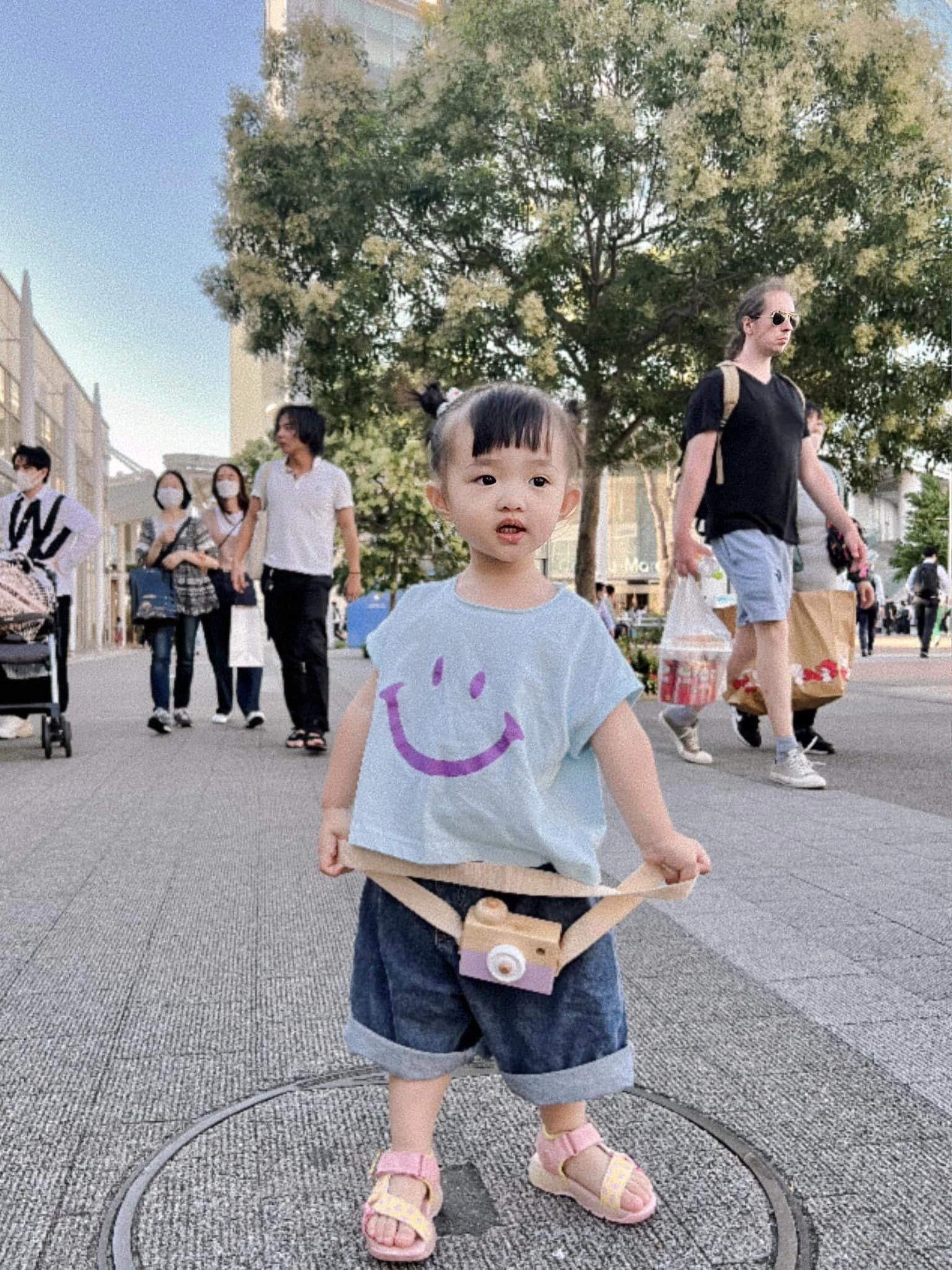 Em bé Việt nổi bần bật giữa bạn bè đồng trang lứa ở Nhật Bản với phong cách dễ thương. Winnie còn rất ra dáng ngôi sao chuyên nghiệp khi giơ tay chữ V chụp hình.
