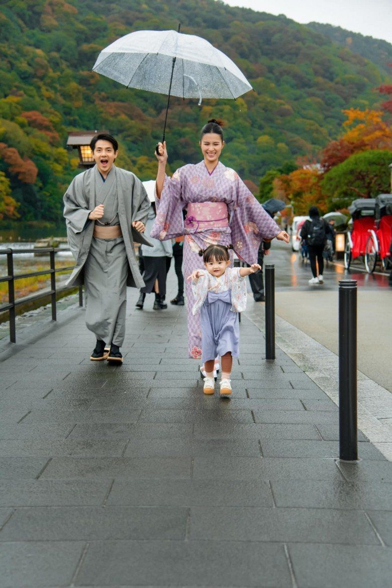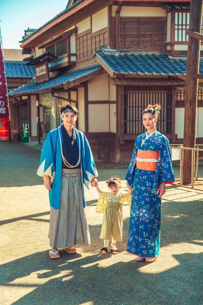 Cả gia đình đồng bộ với kimono nhưng spotlight lại dành hết cho thiên thần nhí hơn 2 tuổi.