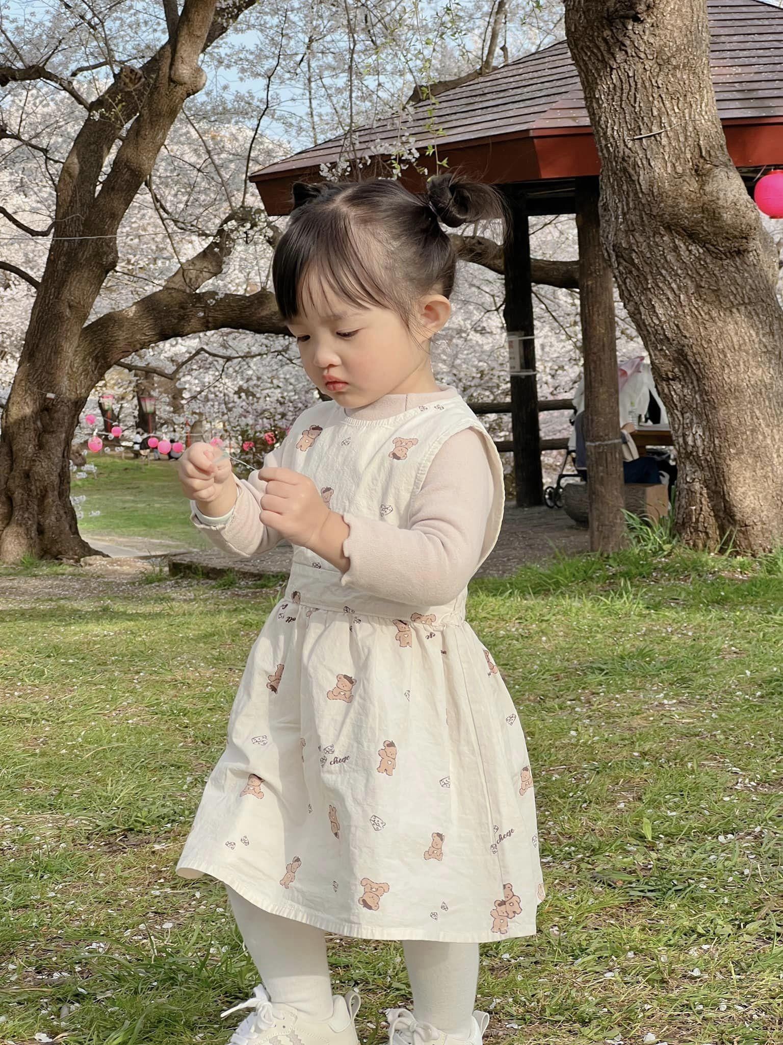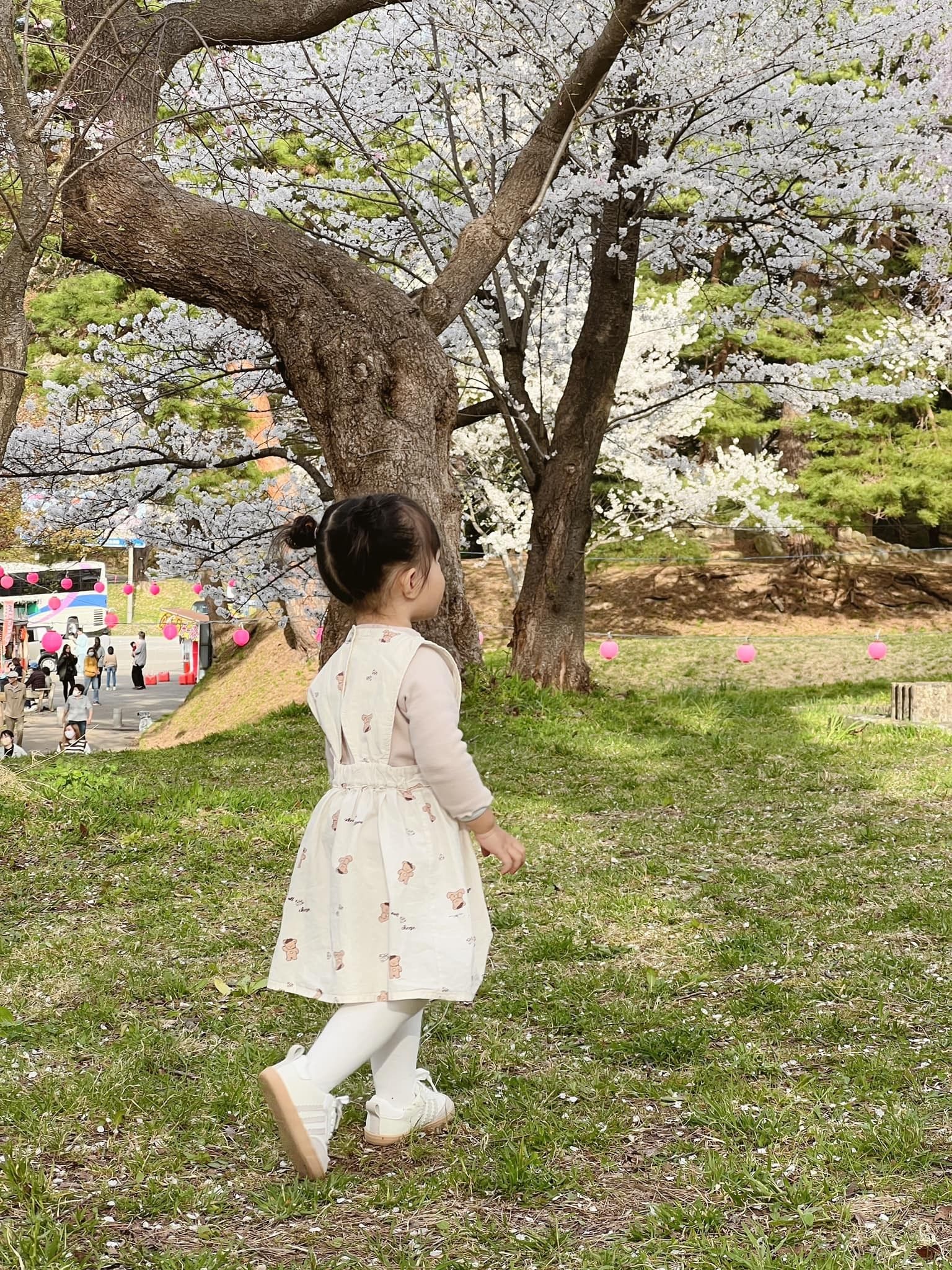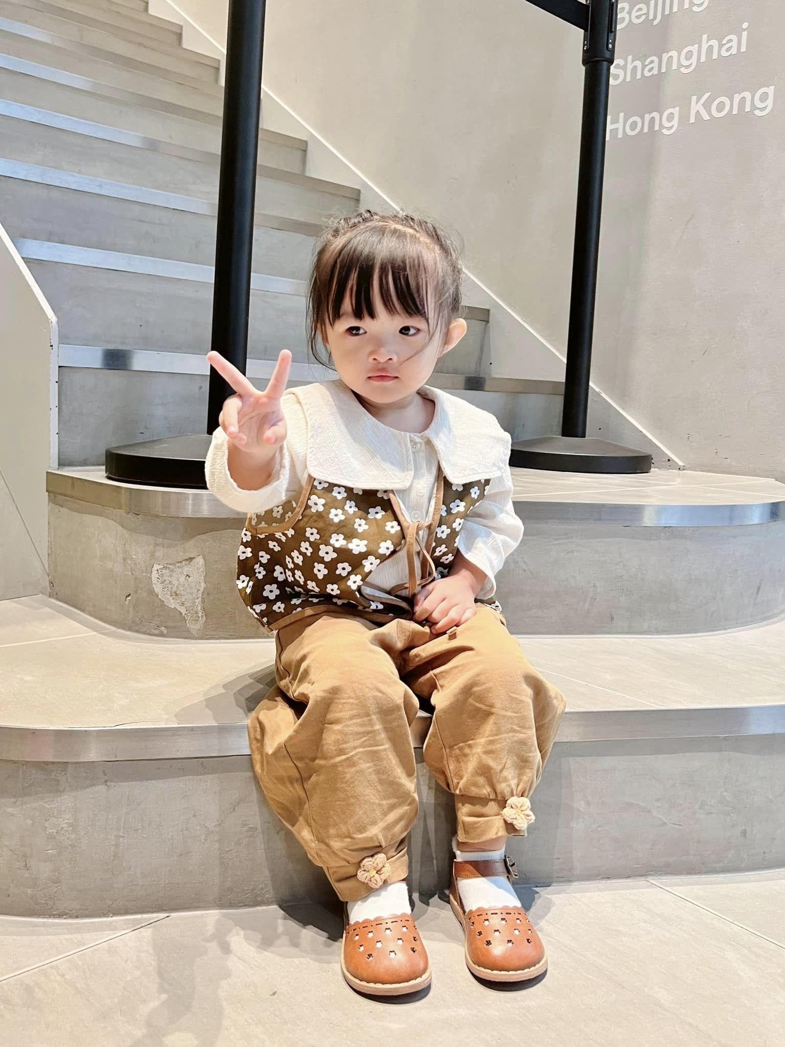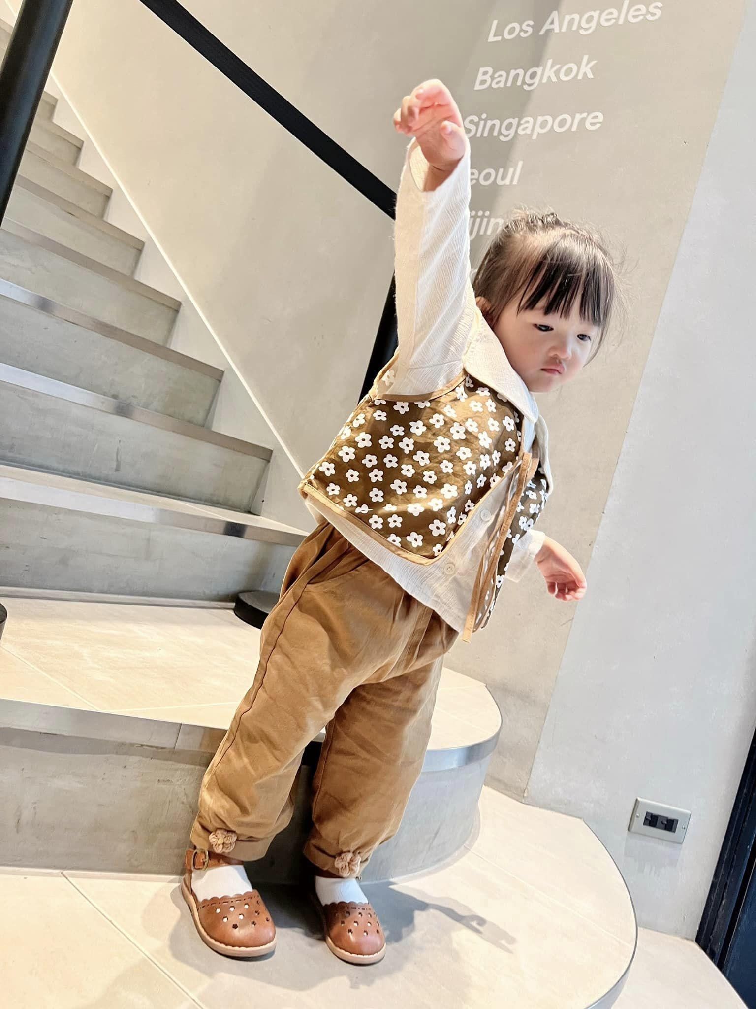 Lần tới Nhật Bản này, em bé được chuẩn bị rất nhiều hành lý với nhiều bộ cánh mang phong cách khác nhau. Mỗi ngày đi chơi, Winnie lại được trưng diện 1 bộ. Khi thì quần ống thụng hơi hướng retro, khi khác lại là váy vóc họa tiết hoa rất hợp bối cảnh ngắm hoa anh đào.
