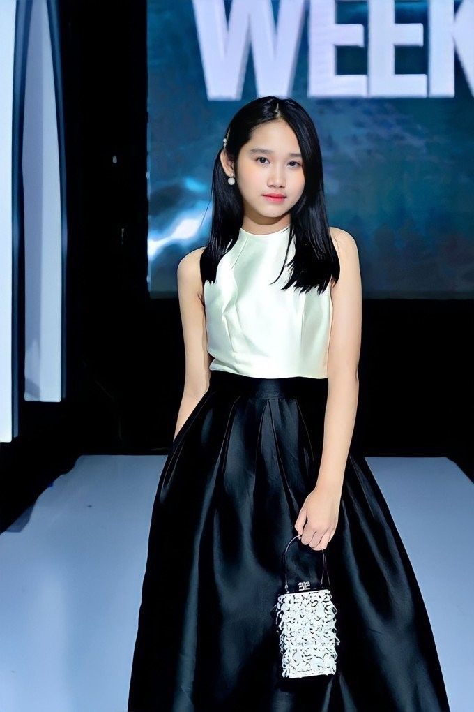 Tuy chỉ mới 11 tuổi, nhưng “tiểu mỹ nhân” đã “nhổ giò” cao 1m6, xấp xỉ gần bằng mẹ. Cô bé còn sở hữu gương mặt khả ái với các đường nét thanh tú. Đặc biệt, Minh Thùy không hề cảm thấy lo lắng hay sợ hãi khi đứng trên thảm đỏ trước những ánh đèn flash chớp nháy liên tục. Ngược lại, cô bé còn giữ được thần thái tự tin tạo dáng một cách chuyên nghiệp đúng kiểu “con nhà nòi”.