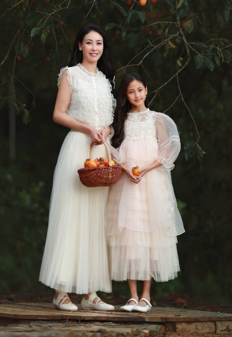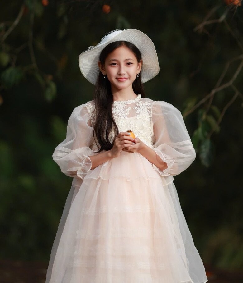 Bé Vivian trong bộ hình diện đầm công chúa xinh xắn. Nhóc tỳ bước vào độ tuổi lên 10 dậy thì càng ra dáng thiếu nữ, dáng người phổng phao, tay chân thon dài, gương mặt ngày càng sắc sảo, thanh tú với chiếc mũi cao, cằm V-line chuẩn gen Hoa hậu được thừa hưởng từ mẹ.